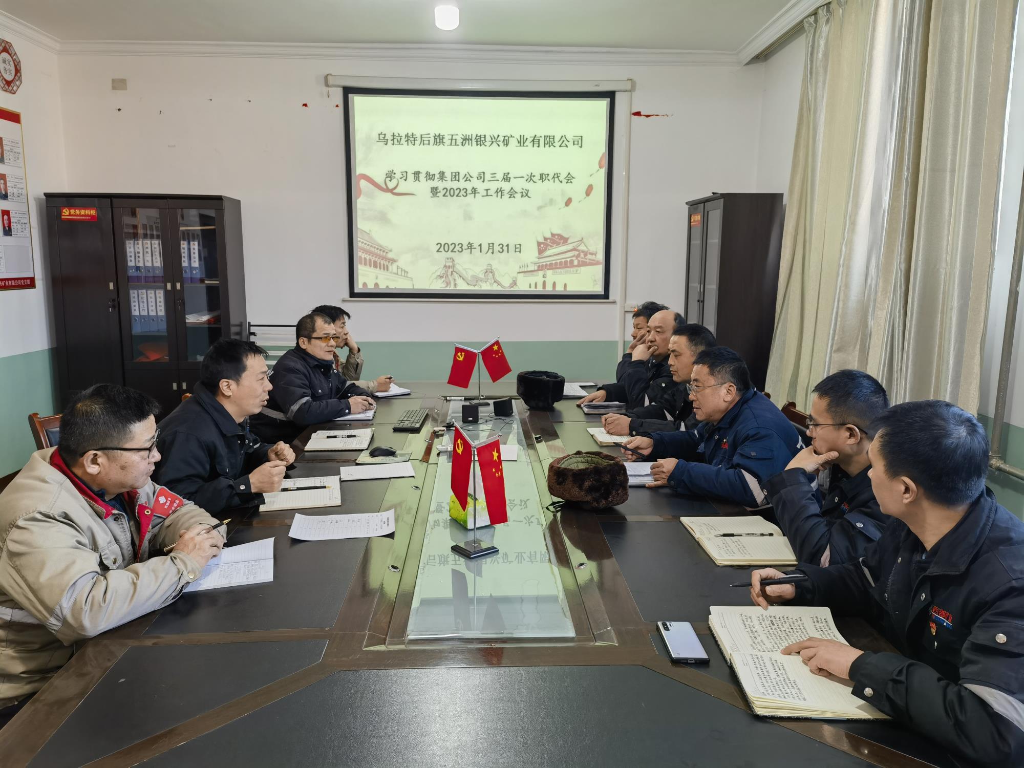 1月31日上午,陜西銀礦五洲銀興黨支部召開理論學習專題會,集中學習陜西有色金屬集團三屆一次職代會暨2023年工作會議精神。會議由黨支部副書記、董事長趙福友主持,班子成員及部分黨員干部參加。