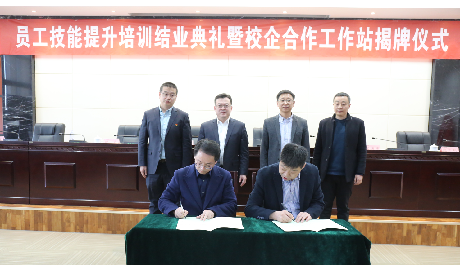 會上宣讀了培訓班優秀學員和培訓優秀管理人員表彰決定,與會領導共同為優秀學員頒發了培訓班優秀學員榮譽證書。隨后,雙方代表簽署了“校企合作戰略框架協議”,標志著天瑞硅材料和陜西國防學院“校企合作工作站”正式成立。蘇旭盛與孟繁增共同為“校企合作工作站”揭牌,相關負責人宣讀了“校企合作工作站”專業帶頭人、站長、產業導師和企業兼職培訓教師聘任文件,雙方領導為受聘人員頒發了聘書。
