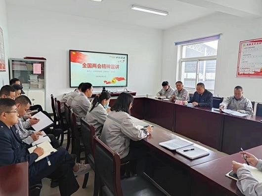 各基層單位將學習好、貫徹好全國“兩會”精神作為一項重要工作來抓,利用工作群“快”、宣傳欄“新”、黑板報“實”的特點,開展廣泛宣傳,傳達兩會好聲音,解讀兩會新思想,利用“三會一課”、宣講學習等方式完成集中傳達學習15次。各車間黨支部結合工作實際就兩會內容展開個人自學、交流研討,進一步強化職責使命,推動全國兩會精神進基層、進一線、進班組。通過透徹深入的宣講,鮮活生動的解讀,讓廣大黨員干部職工備感振奮、備受鼓舞、倍增干勁,凝聚起上下同心、團結奮進的磅礴力量。