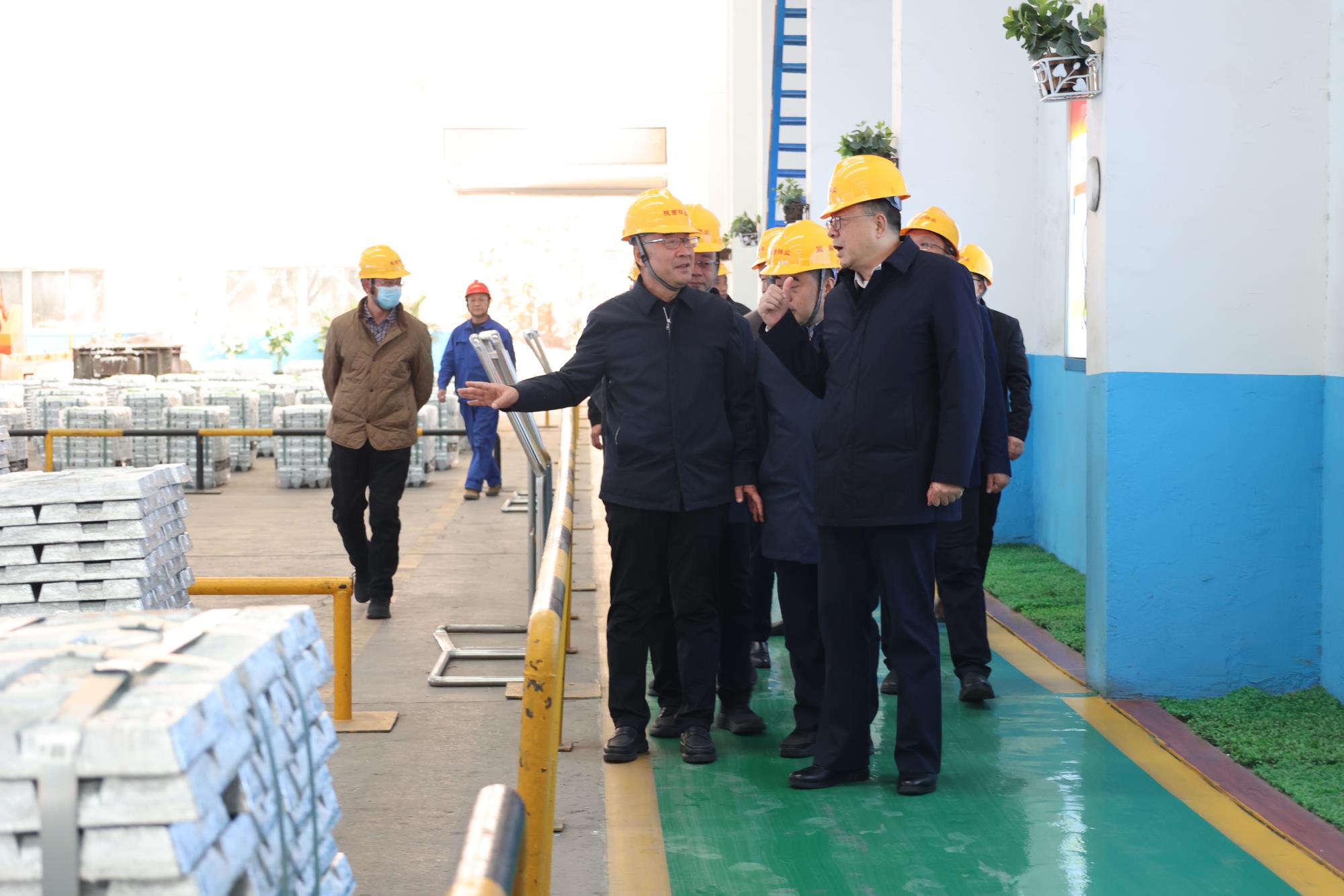 盧建軍一行先后觀看了公司宣傳片及展品展柜,現(xiàn)場(chǎng)參觀了陰極焊板智能制造、熔鑄機(jī)器人自動(dòng)碼垛等生產(chǎn)現(xiàn)場(chǎng),在技術(shù)中心大樓參觀了總調(diào)度指揮中心等生產(chǎn)場(chǎng)所。