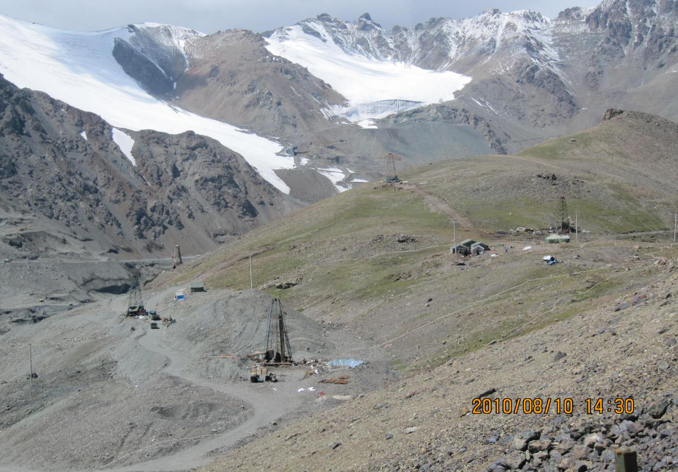 (2010年,新疆和靜縣諾爾湖鐵礦鉆探施工現(xiàn)場(chǎng)冰川長(zhǎng)年不化,鉆機(jī)坐在永凍層上鉆進(jìn)施工)