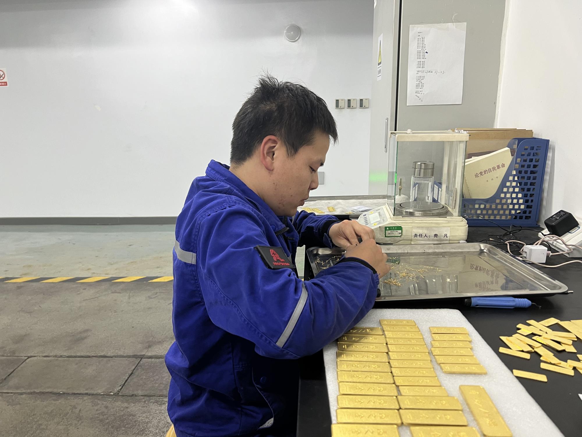 生產(chǎn)人員對(duì)黃金工藝品進(jìn)行“找重”程序
