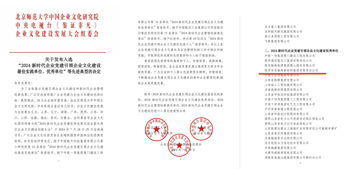 7月28日至29日,2024新時(shí)代企業(yè)黨建優(yōu)秀成果交流會(huì)暨大灣區(qū)企業(yè)文化建設(shè)創(chuàng)新大會(huì)在廣東珠海召開(kāi)。會(huì)上發(fā)布了“2024新時(shí)代企業(yè)黨建引領(lǐng)企業(yè)文化建設(shè)最佳實(shí)踐單位、優(yōu)秀單位”等先進(jìn)典型名單。通過(guò)專(zhuān)家評(píng)審,榆林新材料集團(tuán)榮獲“2024新時(shí)代企業(yè)黨建引領(lǐng)企業(yè)文化建設(shè)優(yōu)秀單位”。