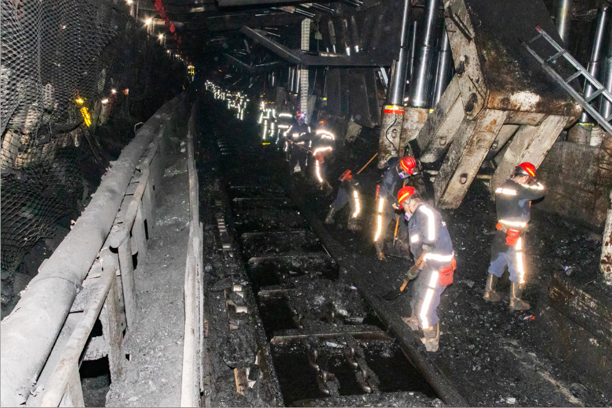 在30202綜采工作面,隨著最后一刀頂煤的順利割落,堅守在生產(chǎn)一線的職工迅速開始連網(wǎng)工作。在連網(wǎng)過程中,各部門緊密協(xié)作,綜采隊隊干靠前指揮,安全管理人員在現(xiàn)場全程監(jiān)督。在場職工或用鐵鍬、或徒手投入到清煤工作中,揮汗如雨、衣衫盡濕,烏黑的臉龐下是他們堅守崗位、篤行奮進的決心與毅力,他們用實績實干護航企業(yè)平穩(wěn)生產(chǎn)。