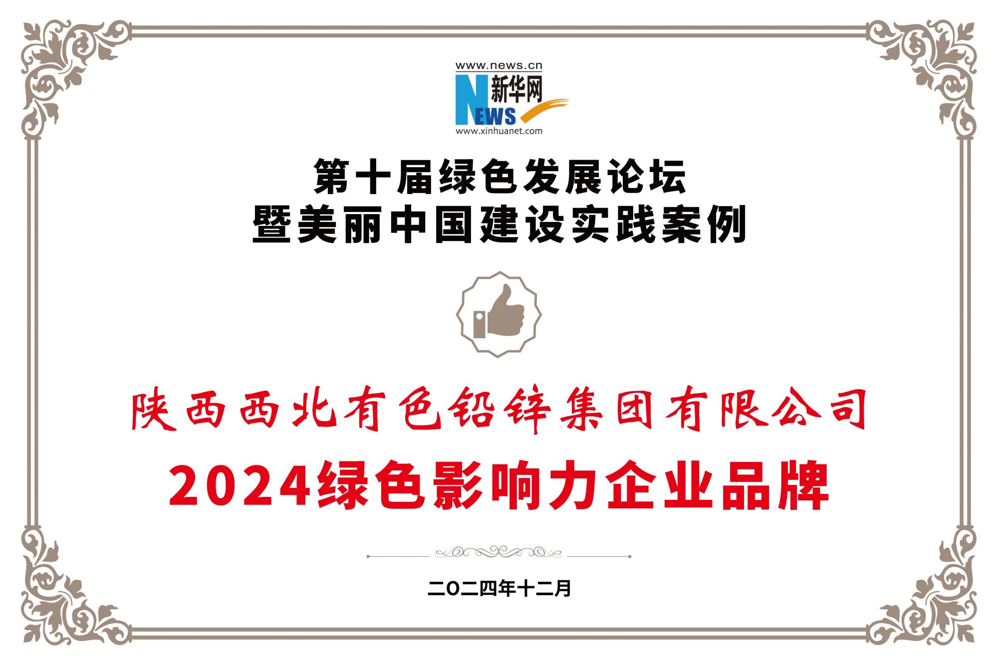地礦集團(tuán)權(quán)屬鉛鋅集團(tuán)獲“2024綠色影響力企業(yè)品牌”殊榮