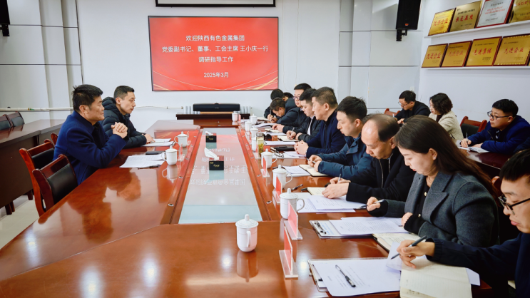 3月4日至5日,陜西有色金屬集團(tuán)黨委副書記、董事、工會主席王小慶一行深入冶礦集團(tuán)盛華冶化、洋釩公司調(diào)研指導(dǎo)工作。冶礦集團(tuán)黨委書記、董事長李忠民,副總經(jīng)理紀(jì)安等陪同。