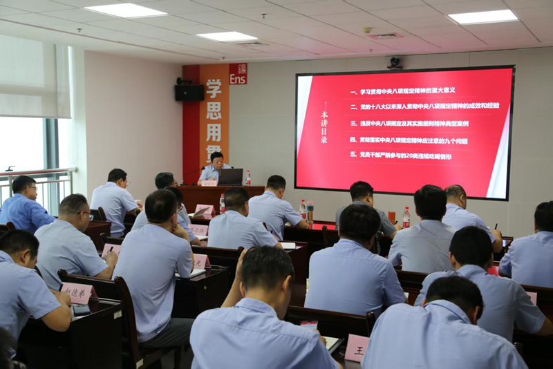為深入推進(jìn)作風(fēng)建設(shè)常態(tài)化、長效化,貫徹落實(shí)黨的二十屆三中全會(huì)精神,6月19日,陜西有色金屬集團(tuán)黨委委員、副總經(jīng)理霍學(xué)杰赴天宏硅業(yè)、光電科技,為兩公司講授題為《鍥而不舍落實(shí)八項(xiàng)規(guī)定精神,以作風(fēng)建設(shè)新成效賦能高質(zhì)量發(fā)展轉(zhuǎn)型升級(jí)》的專題黨課。