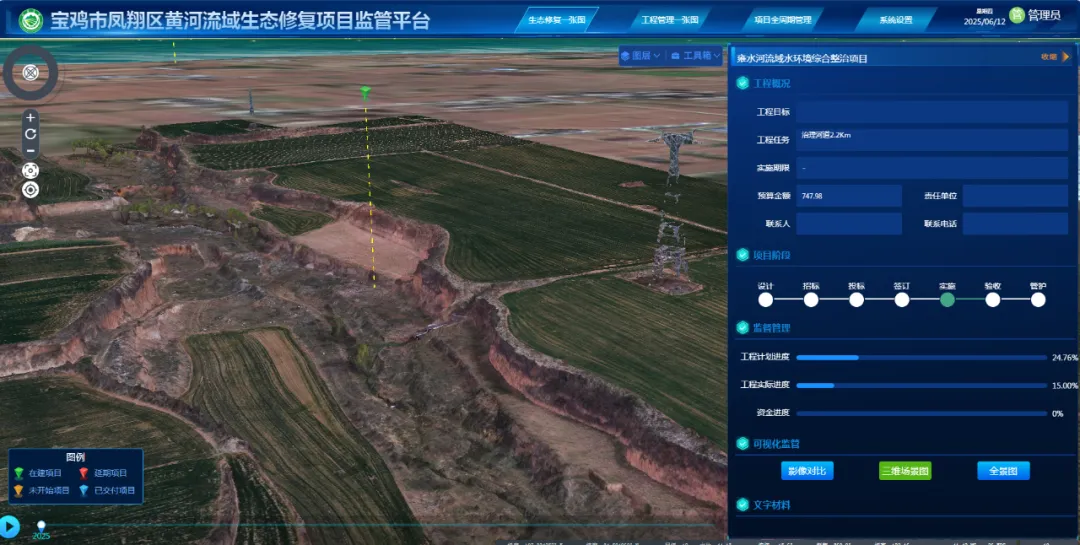 近日,由中國有色金屬工業(yè)西安勘察設計研究院有限公司(以下簡稱"西安勘察設計院")聯(lián)合北京江云智能科技有限公司共同研發(fā)的"寶雞鳳翔區(qū)黃河流域生態(tài)修復項目監(jiān)管平臺"成功上線運行。