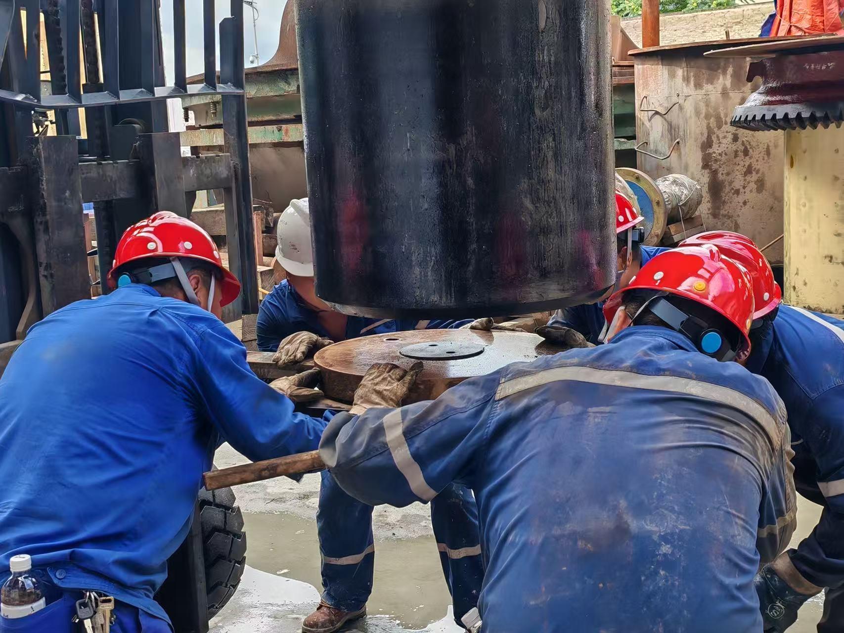 機(jī)械設(shè)備檢修忙。在碎礦車間新線中碎中修現(xiàn)場(chǎng),檢查臂架襯套的磨損情況,打磨偏心套,連接冷卻器,更換定錐襯板等檢修任務(wù)逐一完成,各工種密切配合,在高溫的“烤”驗(yàn)下高效協(xié)作。檢修現(xiàn)場(chǎng)熱火朝天,檢修人員齊整的工服、安全帽、防護(hù)眼鏡,汗珠滾落到設(shè)備上,滴落在工具上,浸透了工服,但檢修人員手中的扳手、萬(wàn)用表、焊槍依然穩(wěn)、準(zhǔn)、快,成為了設(shè)備可靠運(yùn)轉(zhuǎn)的守護(hù)神,為安全生產(chǎn)平穩(wěn)高質(zhì)量保駕護(hù)航。