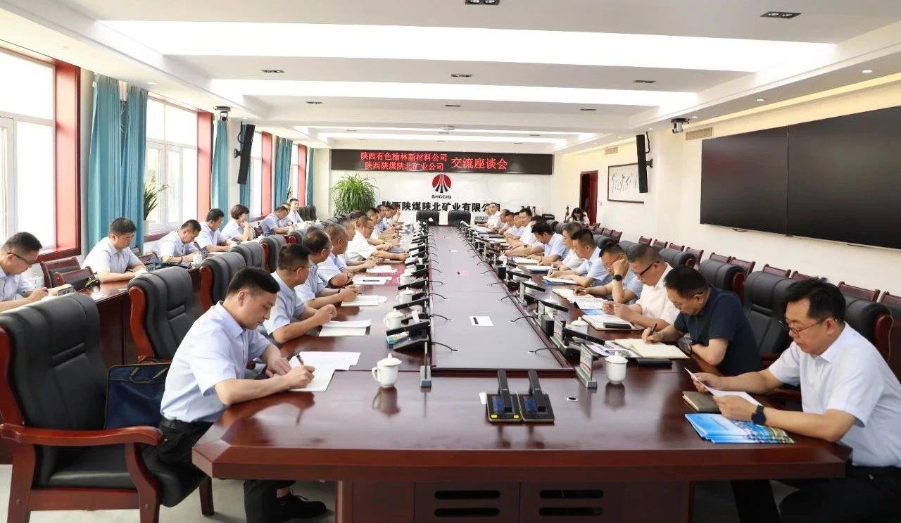 陜煤集團(tuán)陜北礦業(yè)公司和神木檸條塔礦業(yè)公司領(lǐng)導(dǎo)班子成員、機(jī)關(guān)各部室負(fù)責(zé)人參加座談交流。榆林新材料集團(tuán)部分領(lǐng)導(dǎo)班子成員、副總工程師、總經(jīng)理助理、機(jī)關(guān)各部室負(fù)責(zé)人參加對(duì)標(biāo)學(xué)習(xí)交流。