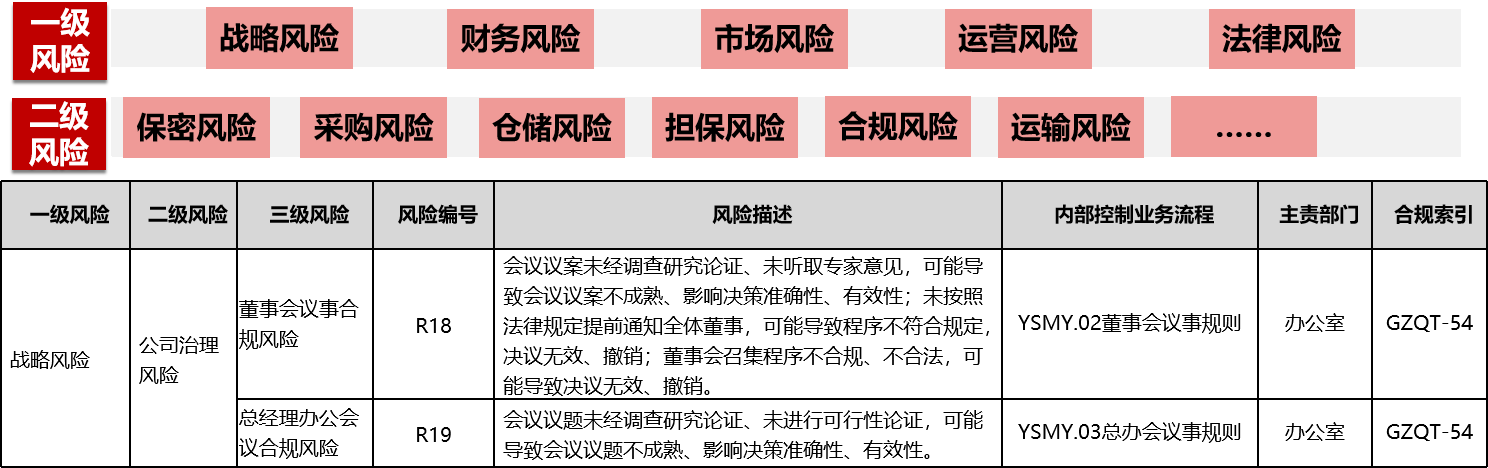 風(fēng)險(xiǎn)數(shù)據(jù)庫與合規(guī)數(shù)據(jù)庫如同內(nèi)部控制的“雙引擎”,共同驅(qū)動(dòng)企業(yè)穩(wěn)健前行。以全面復(fù)盤風(fēng)險(xiǎn)業(yè)務(wù)為基礎(chǔ),完善建立風(fēng)險(xiǎn)數(shù)據(jù)庫,構(gòu)建起“戰(zhàn)略—市場(chǎng)—運(yùn)營—財(cái)務(wù)—法律”五維清單,并與流程框架、制度體系、法規(guī)庫精準(zhǔn)映射,實(shí)現(xiàn)風(fēng)險(xiǎn)“顆?;惫芾怼:弦?guī)數(shù)據(jù)庫則按“法律法規(guī)—部委規(guī)章—公司制度”三級(jí)架構(gòu),形成動(dòng)態(tài)合規(guī)索引,覆蓋全部適用規(guī)范。兩庫實(shí)時(shí)聯(lián)動(dòng):風(fēng)險(xiǎn)識(shí)別階段可及時(shí)比對(duì)合規(guī)要求,整改階段又能反向校驗(yàn)制度缺口,真正做到“風(fēng)險(xiǎn)可見、合規(guī)可循、整改可量”,為內(nèi)部控制提供一體化支撐,并充分滿足監(jiān)管部門的審計(jì)、檢查與持續(xù)合規(guī)需求。