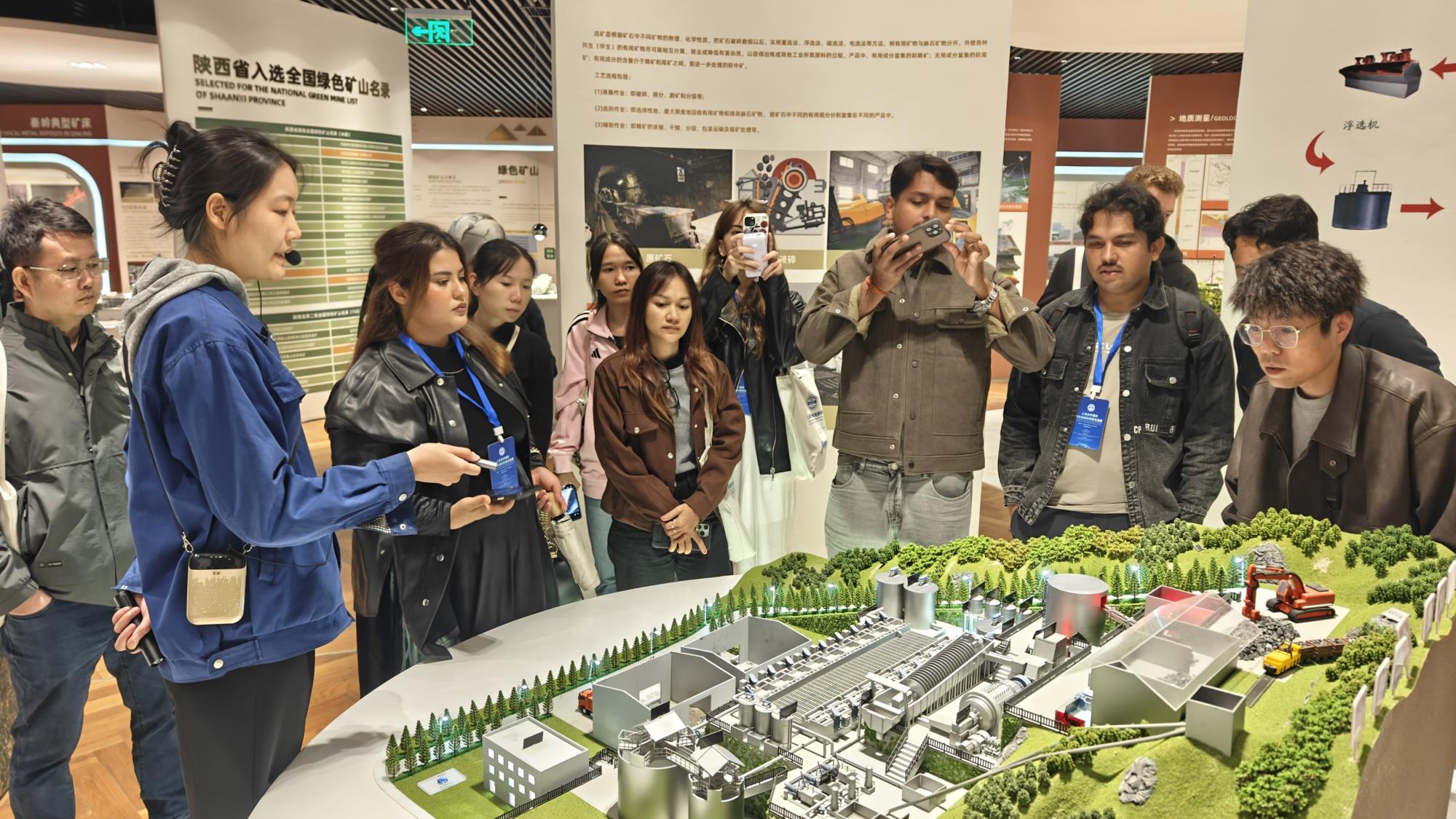 22日上午,交流營首站抵達中國秦嶺地質(zhì)礦產(chǎn)科技館。在專業(yè)講解員引導(dǎo)下,青年科學(xué)家通過立體沙盤、模擬坑道和巖心庫展陳,深入了解了秦嶺作為中國中央造山帶的重要地位,以及地礦集團深耕地質(zhì)勘查與礦產(chǎn)開發(fā)的長期實踐。高度還原的采礦場景和詳實的巖心資料,讓國際青年直觀感受到中國地質(zhì)科研的嚴(yán)謹(jǐn)與艱辛。