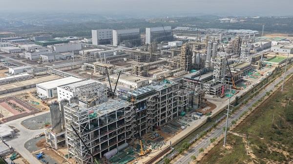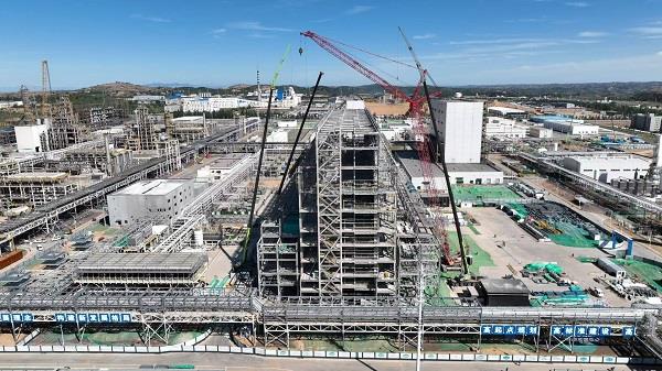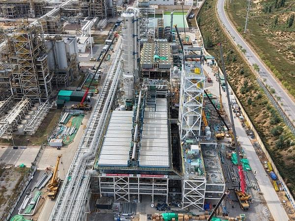 工程進(jìn)度全面領(lǐng)先。至今年10月初,項目主體結(jié)構(gòu)已全面封頂,巍然聳立的鋼構(gòu)框架與核心設(shè)備勾勒出壯觀的工業(yè)圖景;地下管網(wǎng)系統(tǒng)與一期工程實現(xiàn)無縫對接;廠區(qū)道路、圍墻等配套設(shè)施輪廓初顯,現(xiàn)代化工廠的宏偉藍(lán)圖正加速轉(zhuǎn)化為現(xiàn)實。
