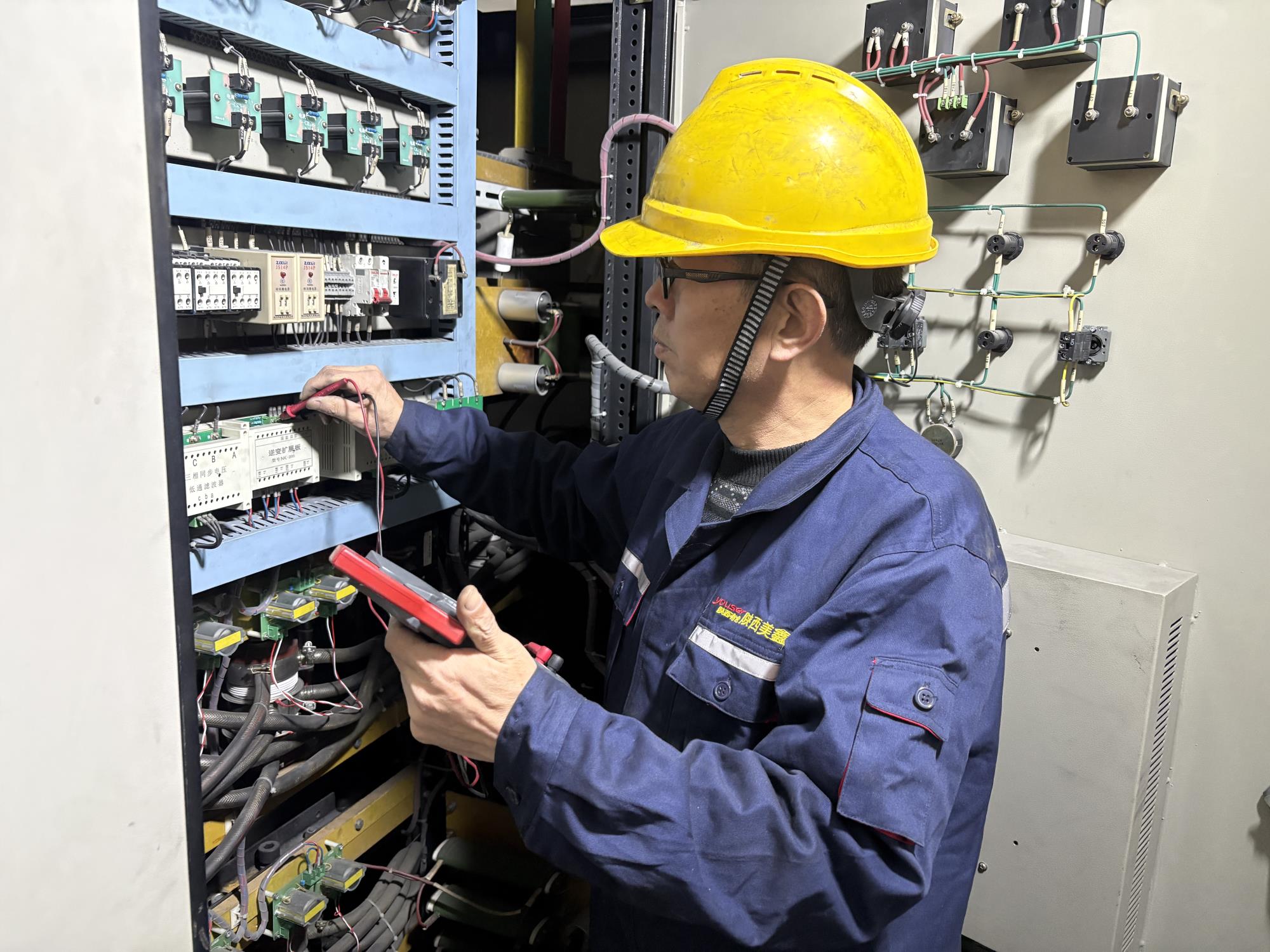 在組裝車間的電氣設(shè)備與配電柜之間,總有一個身著工裝、背著工具包的身影來回穿梭。他時而舉著測溫槍緊盯儀表讀數(shù),時而拿起萬用表細(xì)致測量參數(shù),時而俯身排查線路隱藏故障,他就是美鑫陽極分公司組裝車間的電工梁佰龍。三十年來,梁佰龍以扎實(shí)的技術(shù)、勤懇的態(tài)度和始終如一的擔(dān)當(dāng),默默守護(hù)著電氣系統(tǒng)的平穩(wěn)運(yùn)行,把對電工職業(yè)的熱愛全部傾注在車間每一寸線路、每一臺設(shè)備中。