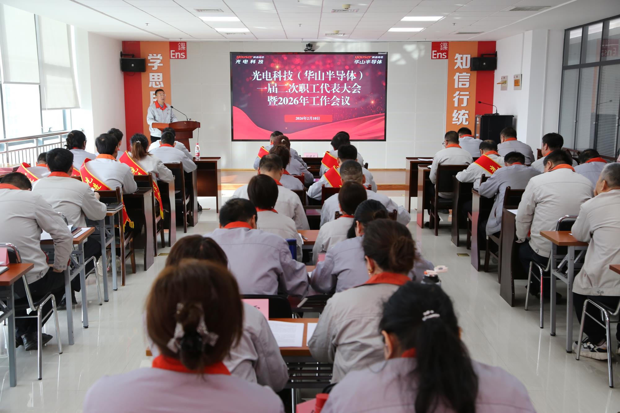 2月10日,光電科技(華山半導(dǎo)體)召開一屆二次職工代表大會暨2026年工作會議。會議深入貫徹落實(shí)集團(tuán)公司三屆四次職代會暨2026年工作會議精神,全面總結(jié)2025年及“十四五”發(fā)展成效,科學(xué)謀劃“十五五”發(fā)展藍(lán)圖,系統(tǒng)部署2026年重點(diǎn)任務(wù),動員全體干部職工以實(shí)干擔(dān)當(dāng),奮力譜寫高質(zhì)量發(fā)展提質(zhì)見效新篇章。公司黨委書記、董事長劉建中出席會議并講話。公司領(lǐng)導(dǎo)班子成員,職工代表、列席代表,以及受表彰的先進(jìn)集體代表和先進(jìn)個人參加會議,工會主席鄭興貴主持會議。