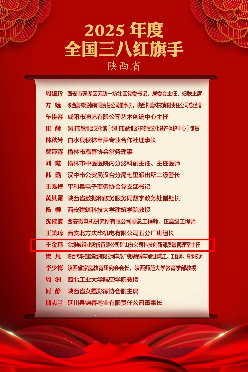 金鉬集團(tuán)王金瑋榮獲“全國三八紅旗手”稱號