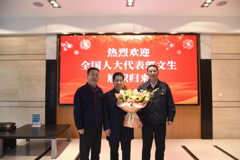 3月13日下午,寶鈦集團(tuán)舉行迎接儀式熱烈歡迎出席十四屆全國人大四次會議的全國人大代表、寬厚板公司職工郭文生履職歸來。寶鈦集團(tuán)黨委書記、董事長王儉,寶鈦集團(tuán)黨委副書記、工會主席賀治民出席儀式并與郭文生座談交流。