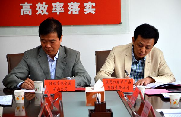 陜西有色金屬礦山公司總經(jīng)理秦寧昌、仁發(fā)公司總經(jīng)理王松華代表雙方公司在合作協(xié)議書上簽字,陜西有色金屬礦山公司黨委書記毛有平、鳳縣縣委書記鄭維國、人大主任王傳中、政協(xié)主席張斌、副縣長(zhǎng)辛元平等出席簽約儀式。
