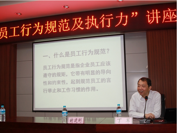 丁教授將理論知識與歷史知識有效結(jié)合,講述了什么是員工行為規(guī)范。強(qiáng)調(diào)企業(yè)員工要遵守規(guī)矩、遵守規(guī)章制度。指出了打造卓越工作習(xí)慣和團(tuán)結(jié)合作的重要性。講座過程中穿插有趣的互動問題,以培根、愛迪生等典型人物故事形象生動地激勵員工的斗志,只有把自己的本職做好,才能使這個團(tuán)隊更加有團(tuán)隊精神,更有凝聚力和執(zhí)行力。