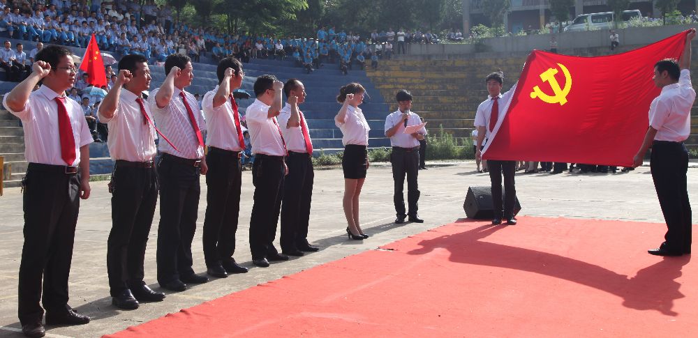合唱比賽開始前,公司黨委舉行了新黨員宣誓儀式。在鮮紅的黨旗下,7名新發(fā)展黨員高舉右拳,以拳拳之心莊嚴宣誓,在鮮紅的黨旗下許下為共產(chǎn)主義事業(yè)奮斗終身的承諾。