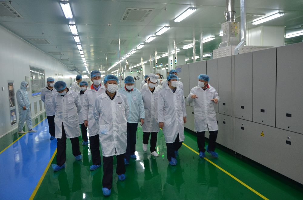 在乘車沿途參觀廠容廠貌并聽取范董事長、田總經(jīng)理關(guān)于項目建設(shè)的基本情況介紹后,岳主任一行深入105電池事業(yè)部調(diào)研參觀。高效電池事業(yè)部是光電科技多晶、單晶電池片的關(guān)鍵工序生產(chǎn)線,擁有德國、荷蘭等國際一流的光伏自動化全套裝備。岳主任興致勃勃按工序順次仔細察看,叮囑陪同的新區(qū)和新城領(lǐng)導(dǎo)要全力支持公司做強做大做優(yōu),強調(diào)要高度重視省內(nèi)市場拉動作用,在市場好的時候,一定要抓住機遇,鼓勵企業(yè)下決心上產(chǎn)線,加快產(chǎn)能釋放,早日達產(chǎn)達效,為新區(qū)經(jīng)濟社會發(fā)展做出更大貢獻。