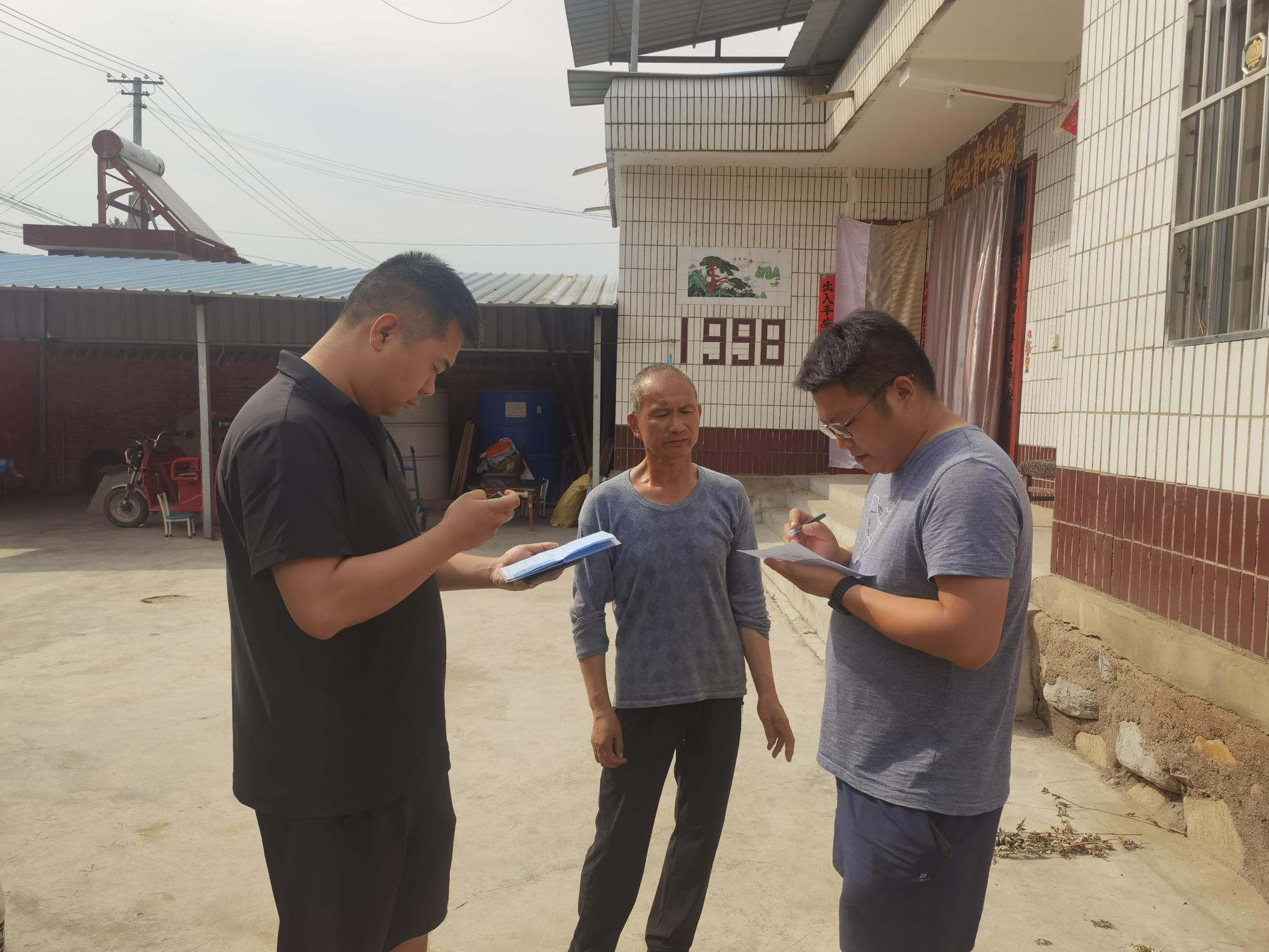 駐村隊(duì)員周洋(左一)、王鐸(右一)入戶走訪