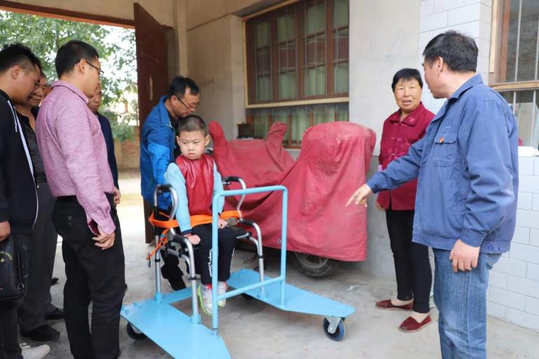 座談會(huì)后,一行人來(lái)到包聯(lián)貧困戶李海軍的家中,該戶家中9歲的孩子患有唐氏綜合癥不能獨(dú)立行走,讓這個(gè)貧困的家庭雪上加霜。駐村干部呂金輝早早發(fā)現(xiàn)了這一點(diǎn),他利用休假回單位期間,特地為患病兒童制作了一輛“代步車”,此次連同慰問(wèn)品一起送到了貧困戶李海軍家中,并現(xiàn)場(chǎng)為患病孩子做了“代步車”操作演示,樸實(shí)的村民激動(dòng)的熱淚盈眶,連連感謝。