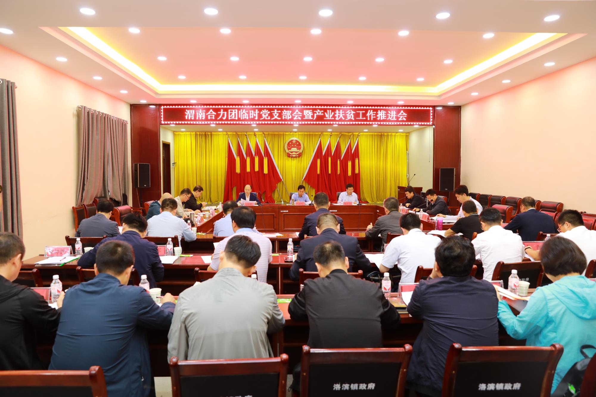 隨后在洛濱鎮(zhèn)政府,渭南合力團(tuán)召開了臨時(shí)黨支部會(huì)議暨產(chǎn)業(yè)扶貧工作會(huì)。會(huì)議由渭南合力團(tuán)副團(tuán)長、陜西有色集團(tuán)黨委副書記郭仕龍主持。會(huì)上,渭南合力團(tuán)副團(tuán)長單位,中鐵二十局集團(tuán)黨委委員、副總經(jīng)理、總會(huì)計(jì)師馬曉輝領(lǐng)學(xué)了省委、省政府《關(guān)于深入學(xué)習(xí)貫徹習(xí)近平總書記來陜考察重要講話重要指示精神 全面打贏脫貧攻堅(jiān)戰(zhàn)的意見》;渭南合力團(tuán)臨時(shí)黨支部委員、陜西鐵路集團(tuán)黨委書記、董事長喬懷玉重溫了省國資委印發(fā)的《國企合力團(tuán)助力脫貧攻堅(jiān)2020年度工作要點(diǎn)》;渭南合力團(tuán)辦公室主任、陜西有色集團(tuán)扶貧辦主任艾軍從產(chǎn)業(yè)扶貧項(xiàng)目總體情況、存在的問題及不足、下一步工作開展等方面匯報(bào)了渭南合力團(tuán)產(chǎn)業(yè)扶貧工作情況;渭南合力團(tuán)臨時(shí)黨支部副書記、渭南市副市長楊武民通報(bào)了渭南市脫貧攻堅(jiān)面臨的形勢,以及今年渭南市脫貧攻堅(jiān)的主要的任務(wù)。