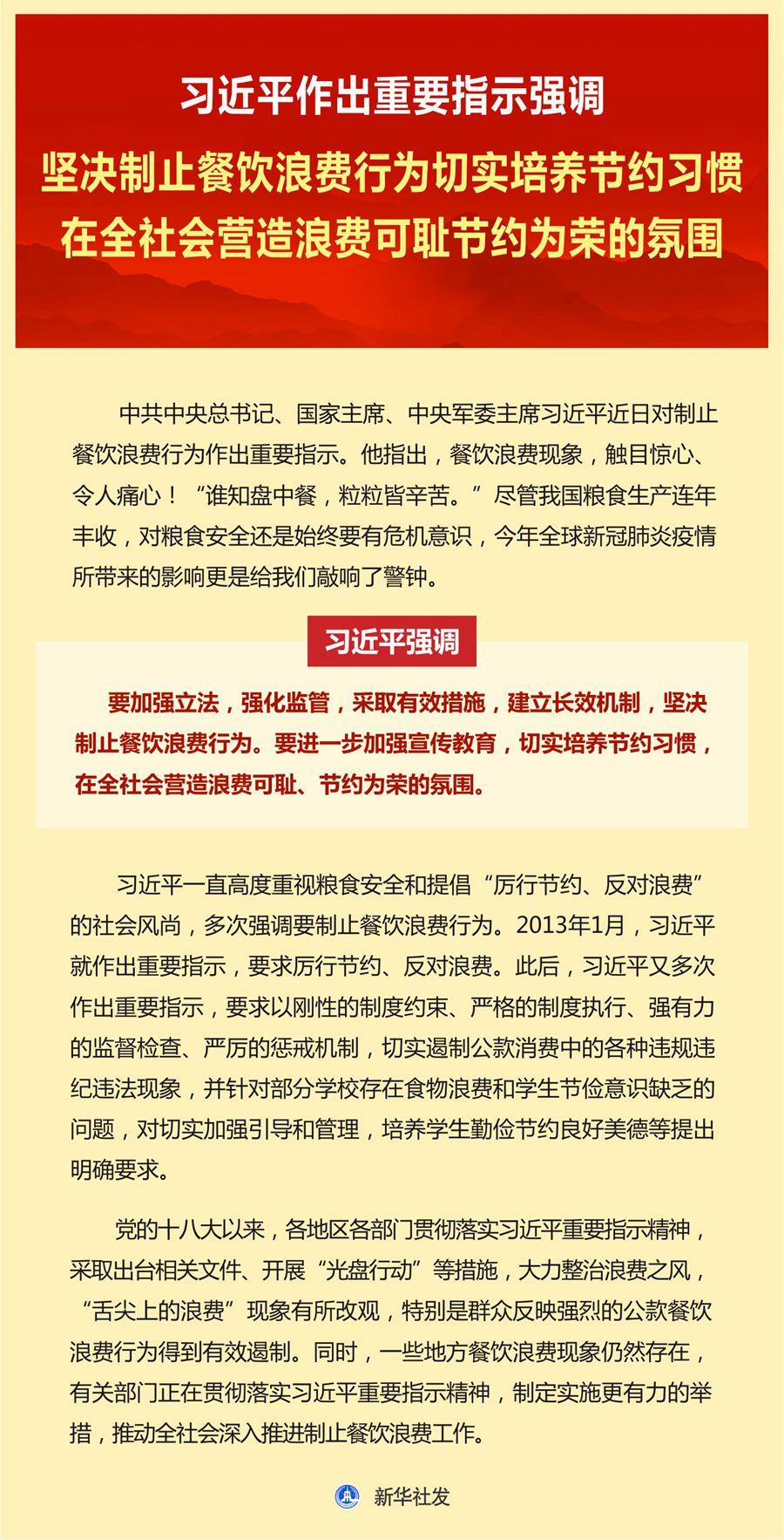 【學(xué)習(xí)資料】習(xí)近平作出重要指示強(qiáng)調(diào)堅(jiān)決制止餐飲浪費(fèi)行為切實(shí)培養(yǎng)節(jié)約習(xí)慣在全社會營造浪費(fèi)可恥節(jié)約為榮的氛圍