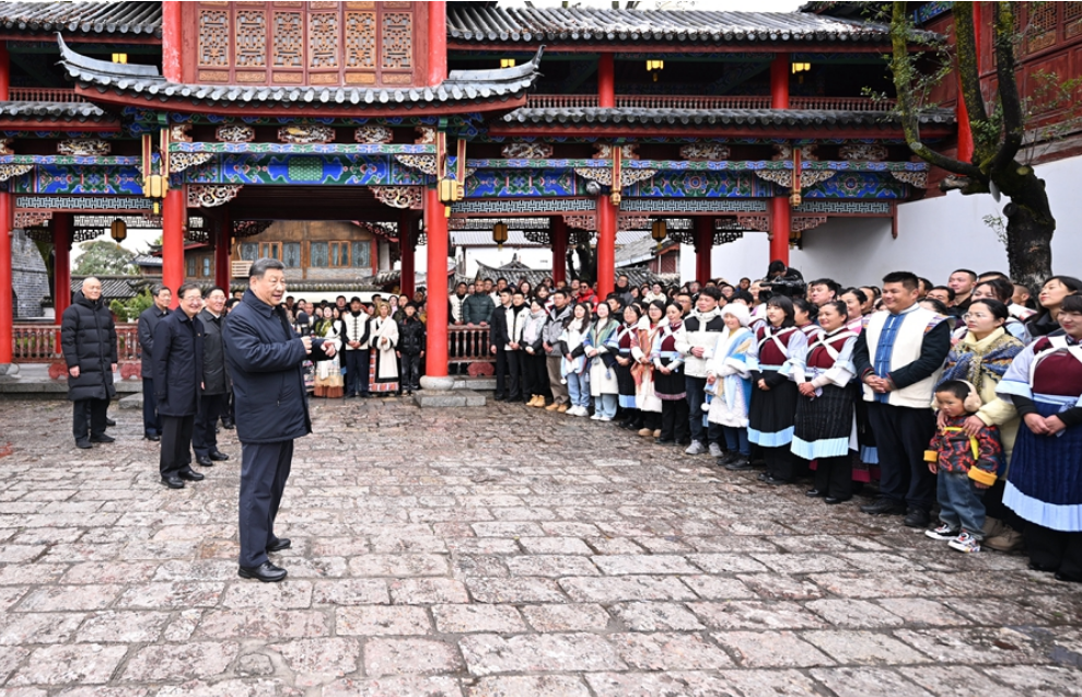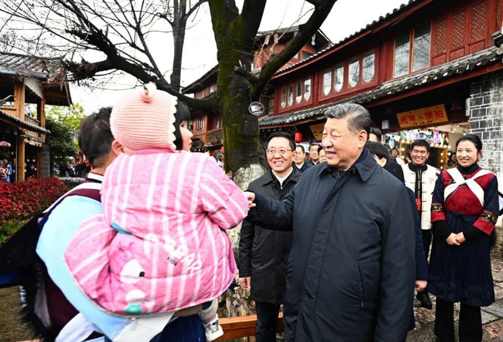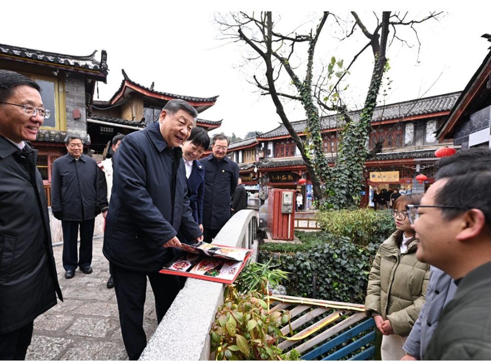 離開時,許多居民和游客圍攏過來為總書記送行。習(xí)近平激勵大家說,麗江有美麗風(fēng)光,有特色文化,有很高知名度,一定能走出一條持續(xù)健康的文旅發(fā)展之路。他祝愿麗江人民的生活如同納西族的“和”姓一樣,幸福安康、和和美美。