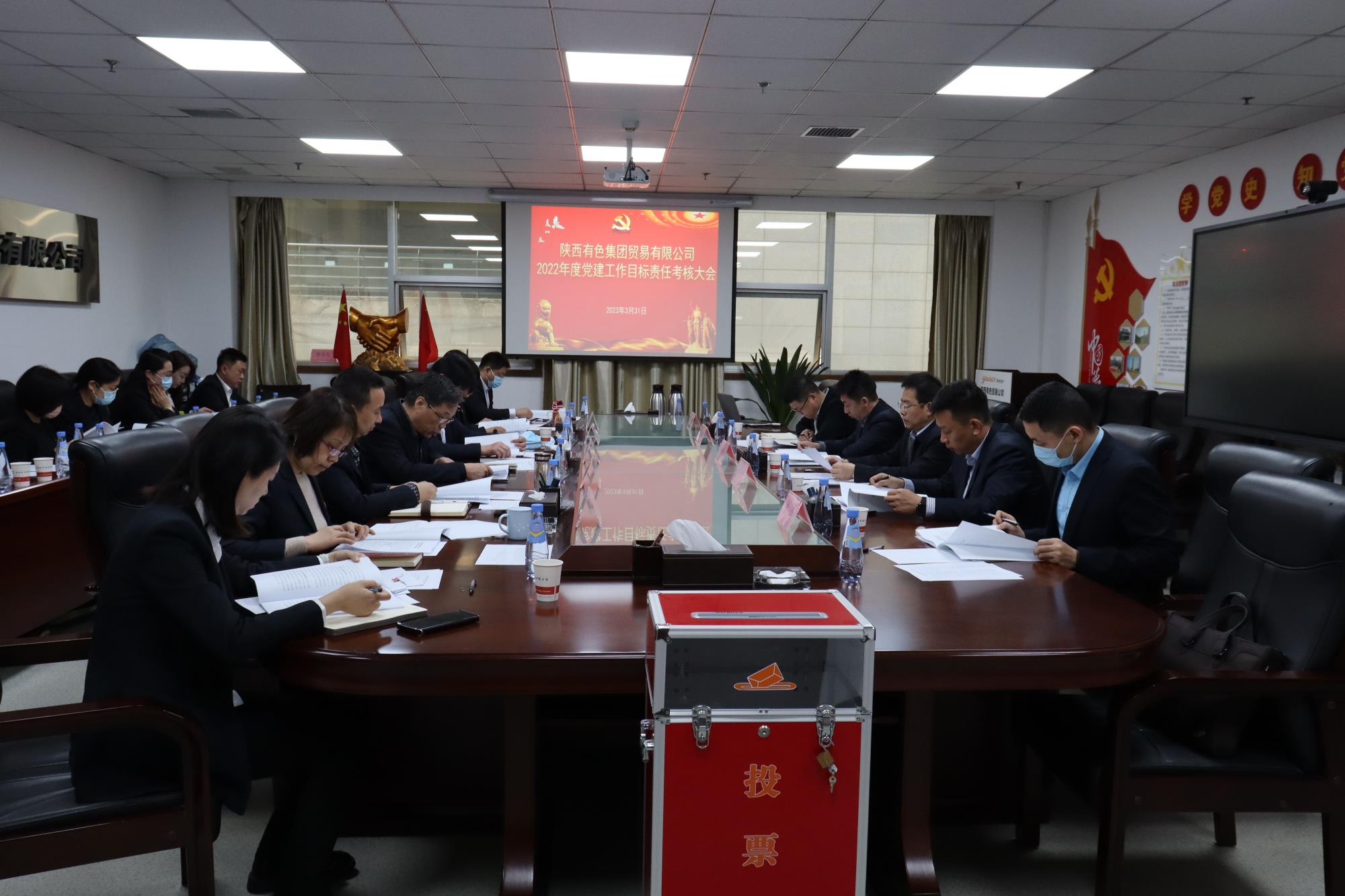 3月31日,陜西有色金屬集團(tuán)黨委副書(shū)記、考核組組長(zhǎng)郭仕龍一行,到貿(mào)易公司開(kāi)展2022年度黨建工作目標(biāo)責(zé)任考核。陜西有色金屬集團(tuán)黨委組織部副部長(zhǎng)宋豐杰主持會(huì)議,公司領(lǐng)導(dǎo)班子成員、中層干部及職工代表參加會(huì)議。