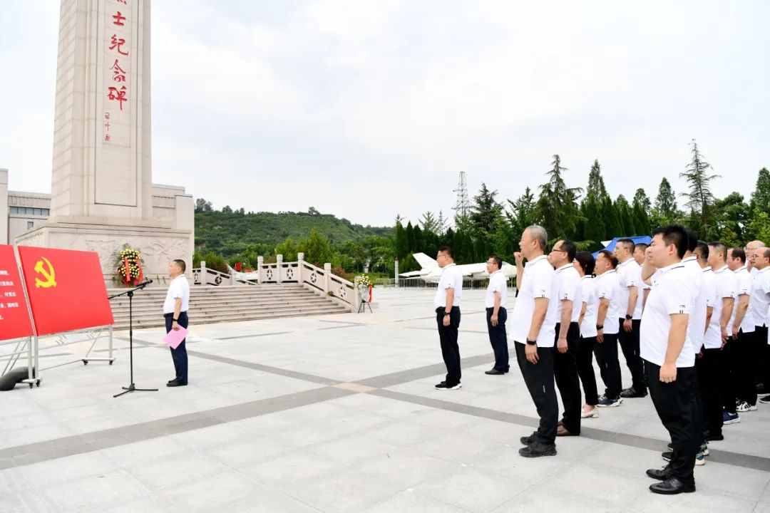 芬芳吐蕊、輕盈綻放的鮮花,寄托著對(duì)革命烈士的深切緬懷和崇高敬意。伴隨著深情的《獻(xiàn)花曲》,雷讓岐邁步上前,仔細(xì)整理花籃緞帶,并帶領(lǐng)大家向扶眉戰(zhàn)役革命烈士行三鞠躬禮,深切緬懷革命先烈豐功偉績。接著,新入黨黨員入黨宣誓、老黨員重溫入黨誓詞,并集體參觀了扶眉戰(zhàn)役紀(jì)念館。