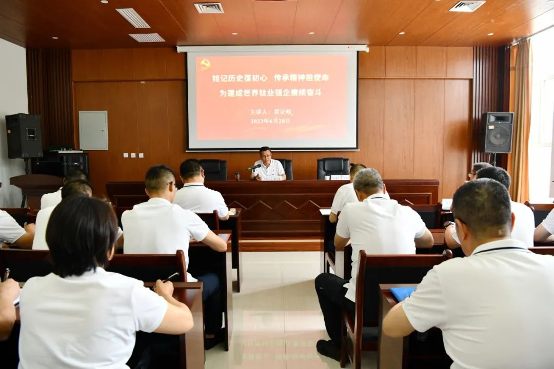 王建超在主持活動(dòng)時(shí)代表公司黨委,向辛勤工作在公司各個(gè)崗位上的共產(chǎn)黨員,致以親切的問候和良好的祝愿,并要求各單位深入學(xué)習(xí)宣傳貫徹黨的二十大精神和習(xí)近平總書記來陜考察重要講話重要指示精神,認(rèn)真?zhèn)鬟_(dá)雷讓岐總經(jīng)理所講黨課精神,按照公司主題教育工作安排,精準(zhǔn)把握工作重點(diǎn)、持續(xù)推進(jìn)工作落實(shí),為建成世界鈦業(yè)強(qiáng)企凝聚奮進(jìn)力量。
