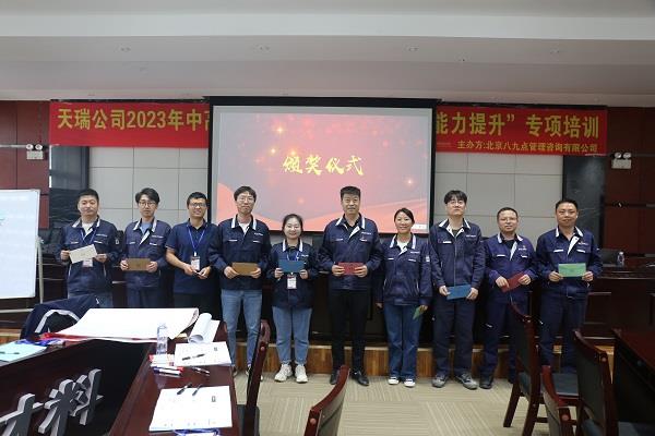 培訓(xùn)結(jié)業(yè)儀式上,人力資源部經(jīng)理張永亮和黨群工作部主任胡磊分別作了結(jié)業(yè)發(fā)言,對(duì)兩位授課講師的精彩授課表示感謝,對(duì)本次參加培訓(xùn)的學(xué)員表示祝賀。他們勉勵(lì)所有參訓(xùn)人員,要把本次培訓(xùn)學(xué)習(xí)作為個(gè)人管理能力提升的一個(gè)新起點(diǎn),同日常管理工作實(shí)際結(jié)合起來,加強(qiáng)學(xué)習(xí)、提高修養(yǎng),不斷完善自己、提高自己,在今后的工作崗位上扎實(shí)工作、開拓進(jìn)取,為天瑞硅材料的發(fā)展作出應(yīng)有的貢獻(xiàn)。