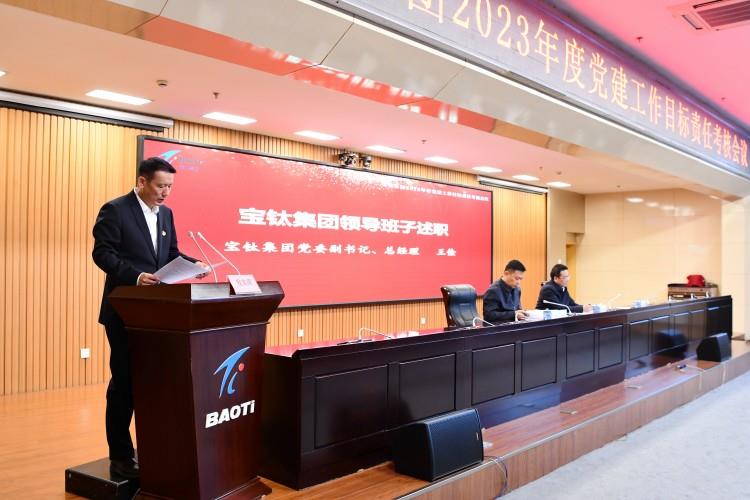 寶鈦集團(tuán)黨委副書(shū)記、總經(jīng)理王儉代表集團(tuán)領(lǐng)導(dǎo)班子述職。他從企業(yè)經(jīng)營(yíng)業(yè)績(jī)完成情況、黨建工作目標(biāo)責(zé)任完成情況、存在問(wèn)題及原因分析等三個(gè)方面詳細(xì)匯報(bào)了寶鈦集團(tuán)2023年工作,并提出了2024年工作舉措。