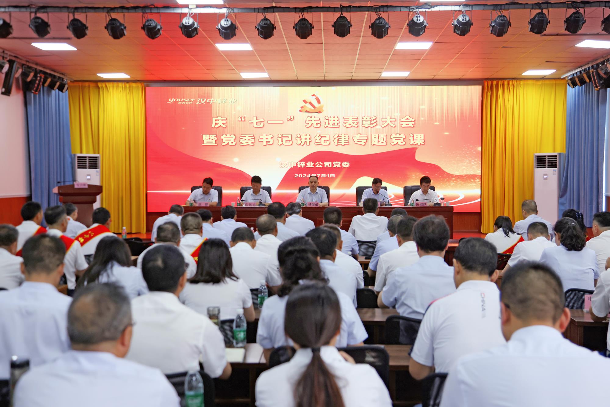為慶祝中國共產(chǎn)黨成立103周年,推動黨紀(jì)學(xué)習(xí)教育走深走實,7月1日上午,漢中鋅業(yè)公司黨委在多功能廳召開慶“七一”先進表彰大會,學(xué)習(xí)傳達陜西有色金屬集團慶祝中國共產(chǎn)黨成立103周年“兩優(yōu)一先”表彰會議暨黨建工作交流座談會精神,公司黨委書記、董事長楊海東講黨紀(jì)學(xué)習(xí)教育專題黨課。公司領(lǐng)導(dǎo)班子成員出席會議。會議由公司黨委副書記、總經(jīng)理王瑜主持。