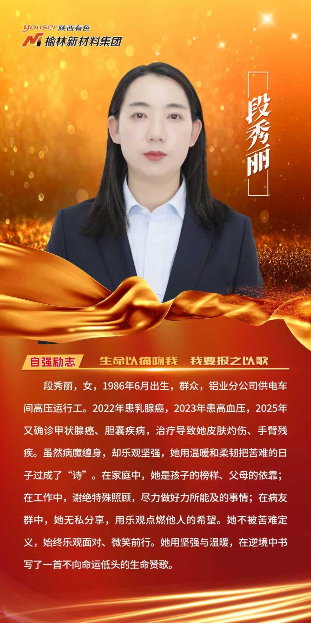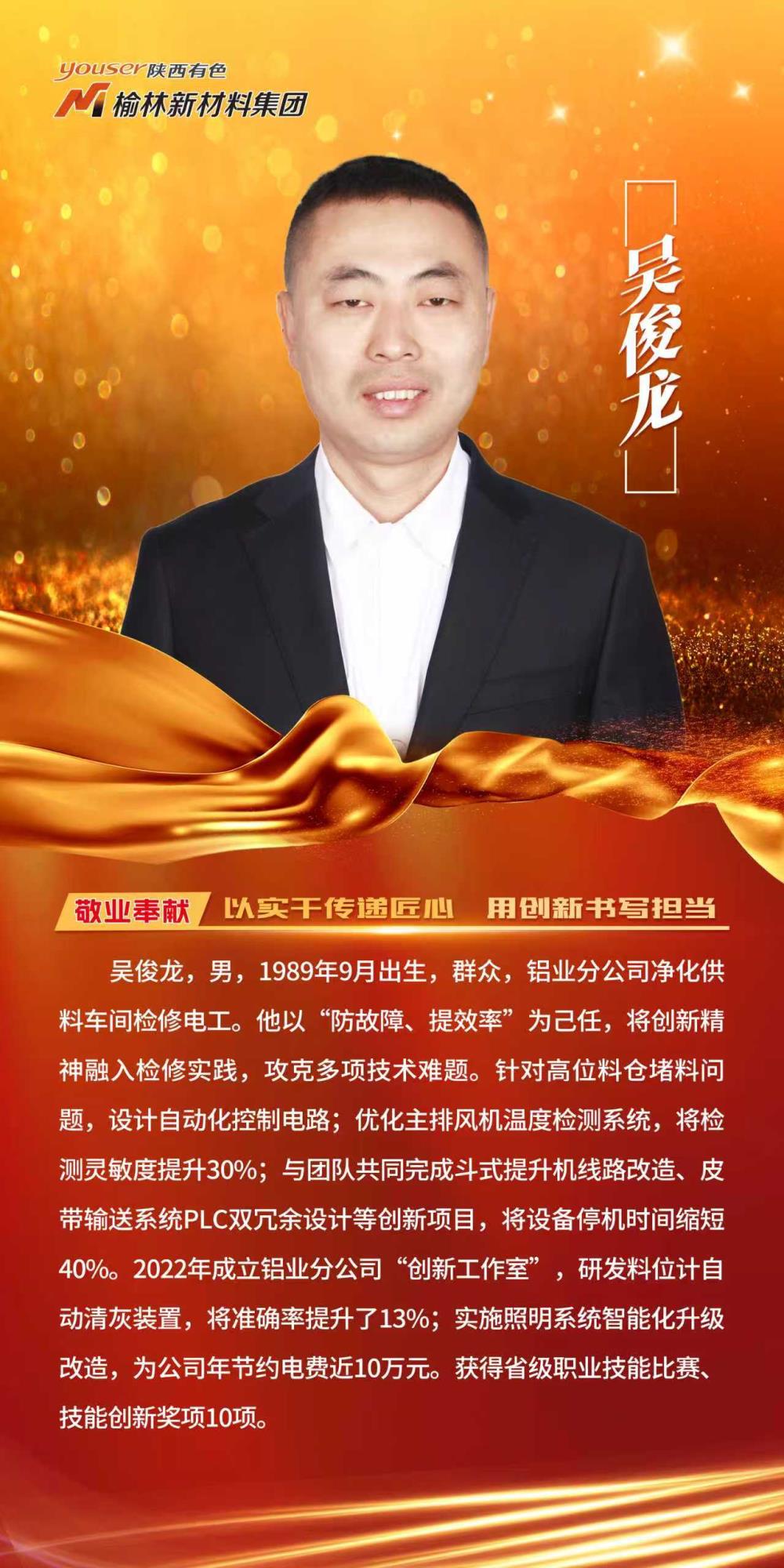 發(fā)布儀式上,榆林新材料集團合金分公司鑄造車間鑄造工曹孝孝被授予“助人為樂好人”;鋁業(yè)分公司凈化供料車間檢修電工吳俊龍被授予“敬業(yè)奉獻好人”;鋁業(yè)分公司電解三車間多功能天車工雍樂被授予“孝老愛親好人”;鋁業(yè)分公司供電車間高壓運行工段秀麗被授予“自強勵志好人”。
