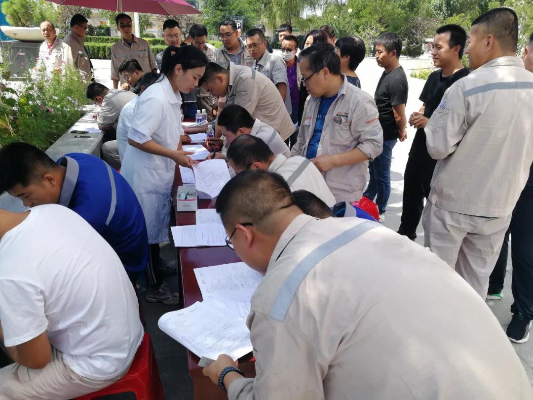 活動(dòng)當(dāng)天雖然烈日炎炎,驕陽(yáng)似火,卻阻擋不住榆林新材料公司干部職工傳遞愛(ài)心的熱情?;顒?dòng)現(xiàn)場(chǎng),在榆林市中心血站醫(yī)護(hù)人員的指導(dǎo)下,在工作人員的有序組織下,參與獻(xiàn)血的志愿者們認(rèn)真填寫(xiě)登記表、測(cè)血壓、抽血化驗(yàn),經(jīng)驗(yàn)血合格后再依次進(jìn)行獻(xiàn)血。獻(xiàn)血隊(duì)伍中既有公司領(lǐng)導(dǎo),又有普通職工;既有第一次參加獻(xiàn)血的青年員工,也有工作多年的老同志,他們大多數(shù)都是黨員職工,用同樣的方式表達(dá)著自己的愛(ài)心,奉獻(xiàn)著自己的真情。