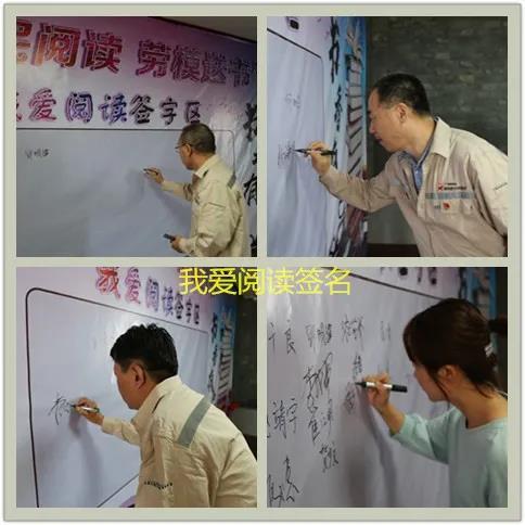 贈書結(jié)束后,公司領(lǐng)導(dǎo)和現(xiàn)場所有勞動模范代表、職工代表在“全民閱讀·我愛閱讀”簽名區(qū)簽字留念。一個個簽名,簽下的是公司領(lǐng)導(dǎo)對“全民閱讀”工作和職工讀書學(xué)習(xí)的高度重視,簽下的是廣大職工會員對讀書閱讀的熱愛和對新材料這個大家庭的愛!