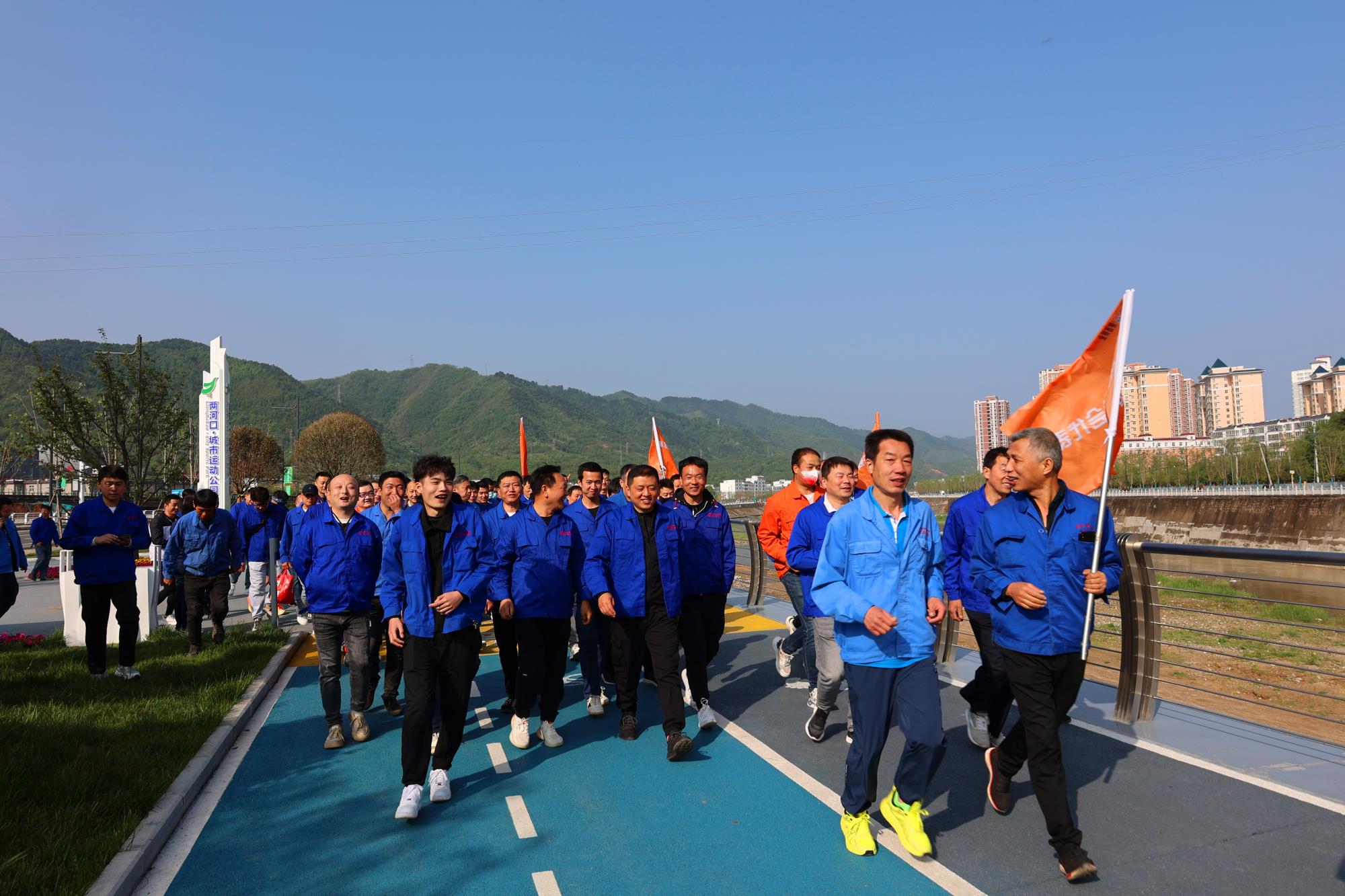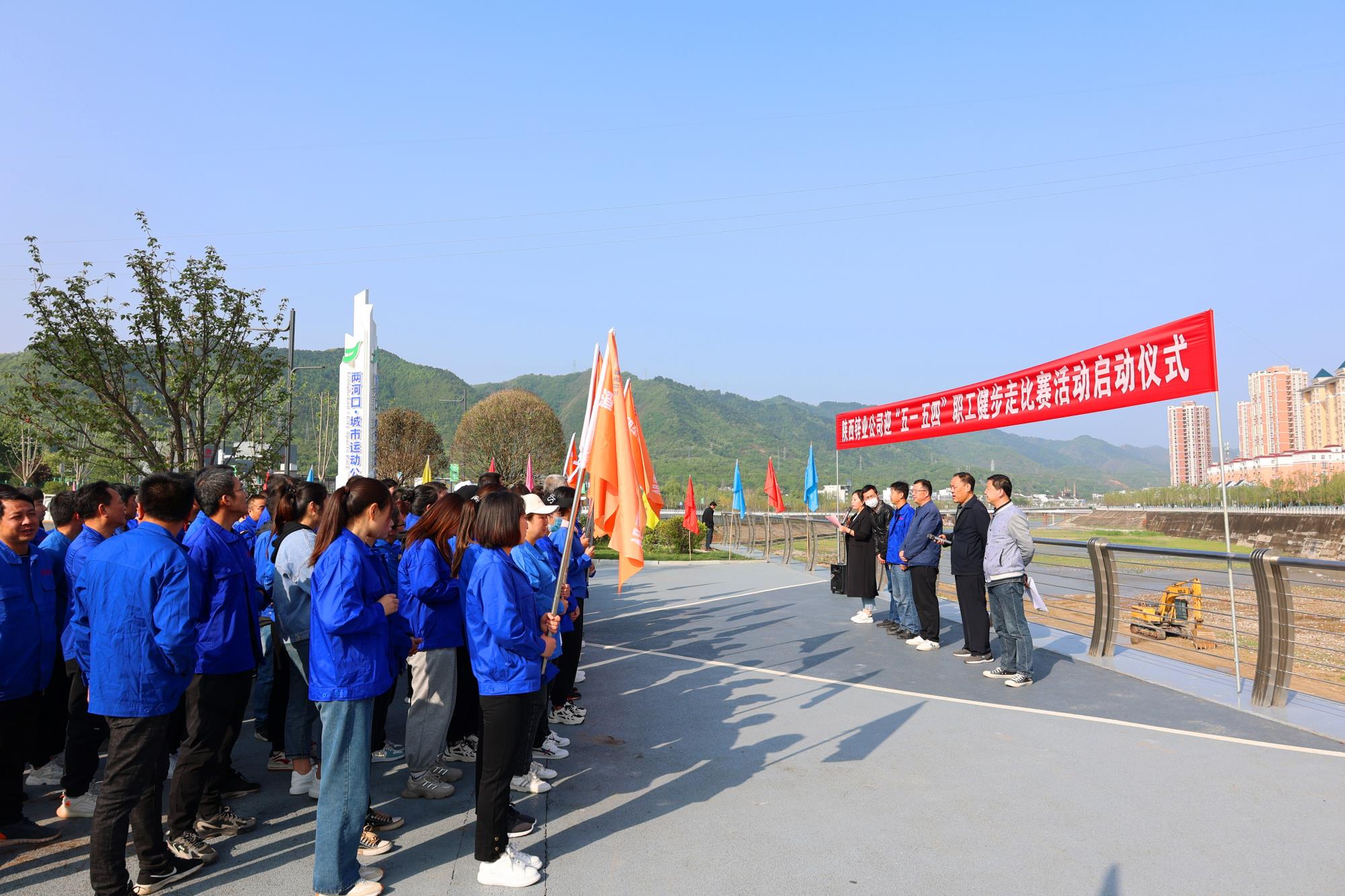 人間四月天,陽春好時節(jié)。為強健職工體魄,鼓勵職工綠色出行,打造健康文明、昂揚向上、全員參與的職工文化,4月25日上午,陜西鋅業(yè)公司工會、團委聯(lián)合舉辦的迎“五一、五四”職工健步走比賽活動在兩河口城市運動公園進行,來自公司9個基層分會200多名職工參加。