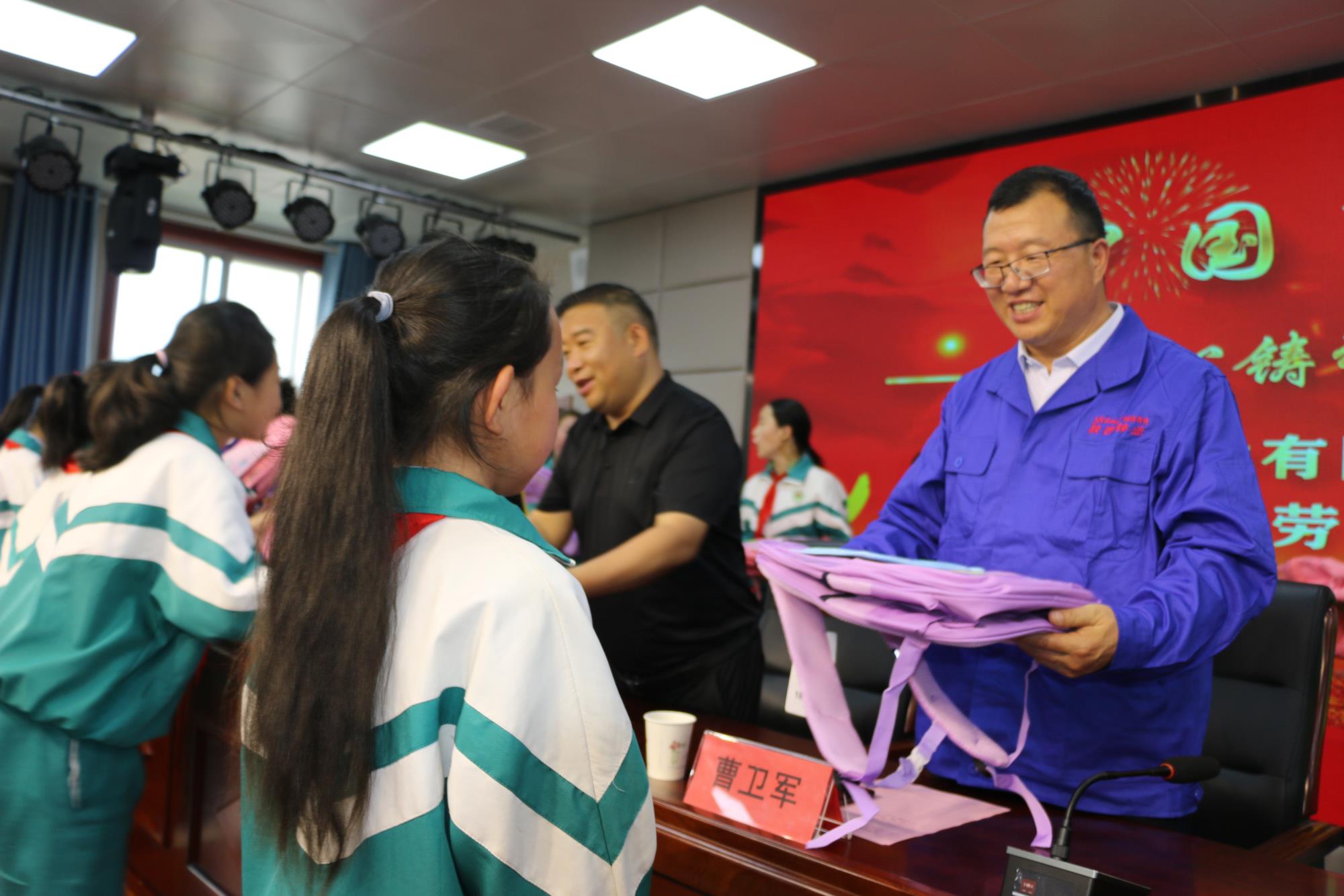活動最后,陜西鋅業(yè)公司向困難學(xué)生贈送了書包、文具盒等學(xué)習(xí)用品,并合影留念。向孩子們送上節(jié)日祝福、共同慶?!傲粌和?jié)”。