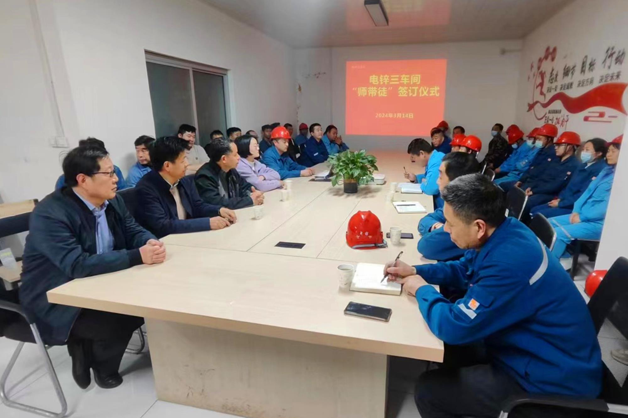 圖為電鋅三車間工會“師帶徒”結(jié)對簽字儀式