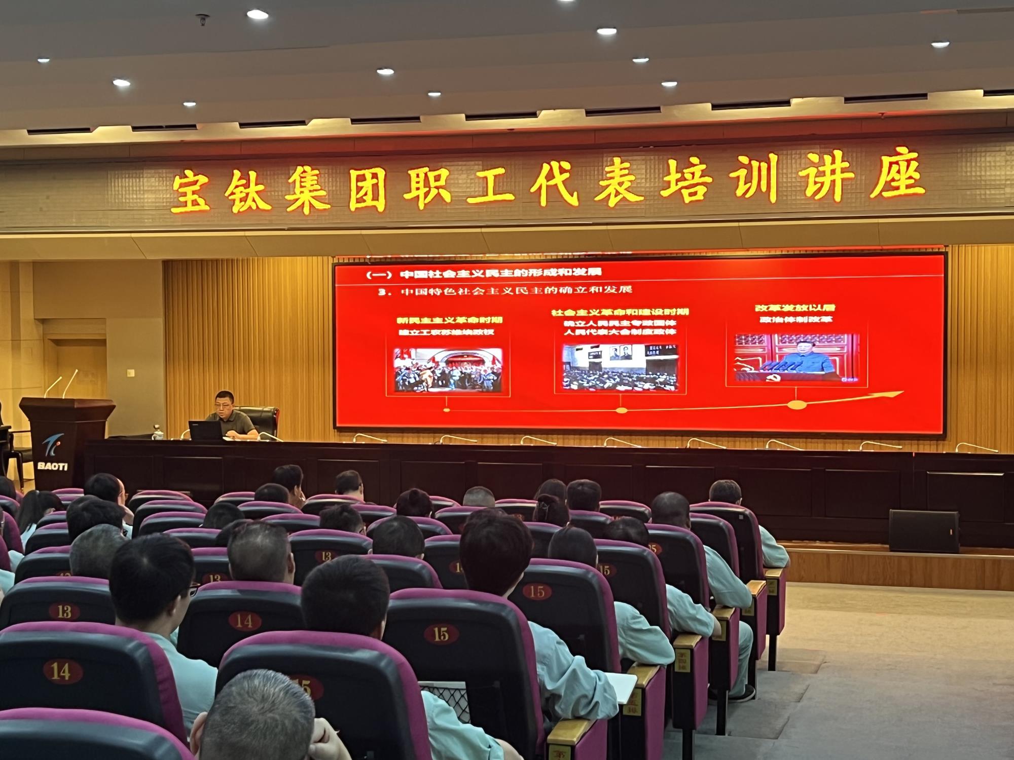 為提高職工代表工作水平,切實做好民主管理工作,6月3日,寶鈦集團工會在寶鈦賓館 7 樓學術報告廳舉辦了職工代表培訓講座。寶鈦集團194名職工代表聆聽講座。