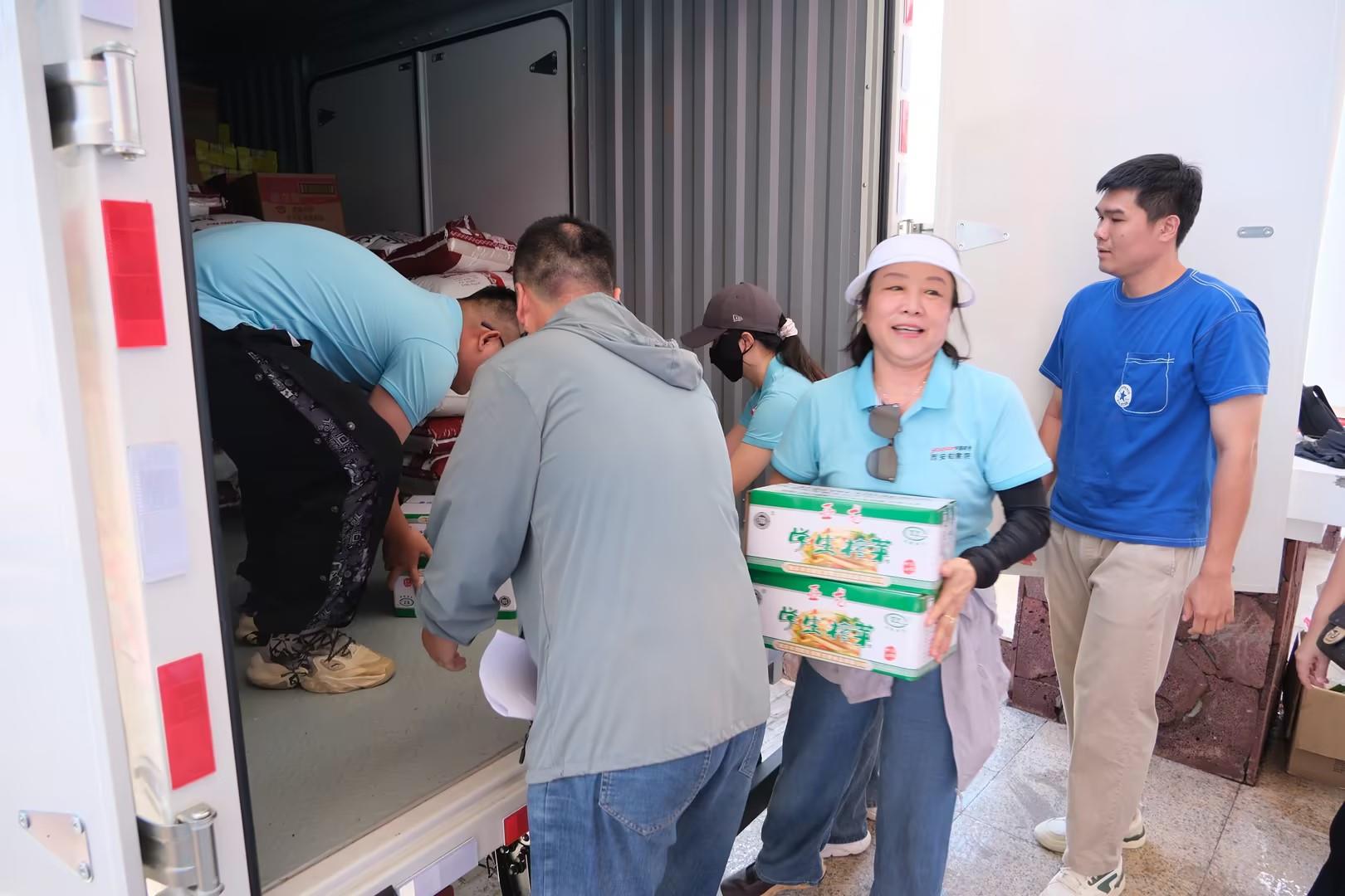 “臺(tái)風(fēng)登陸的時(shí)候威力很大,沒(méi)有辦法做什么救援,只能是等臺(tái)風(fēng)停了過(guò)來(lái)。希望能盡我們微薄之力幫助文昌群眾早日渡過(guò)難關(guān),恢復(fù)正常生活?!焙D戏止窘?jīng)理仉燕和員工一起把物資搬下卡車(chē)。