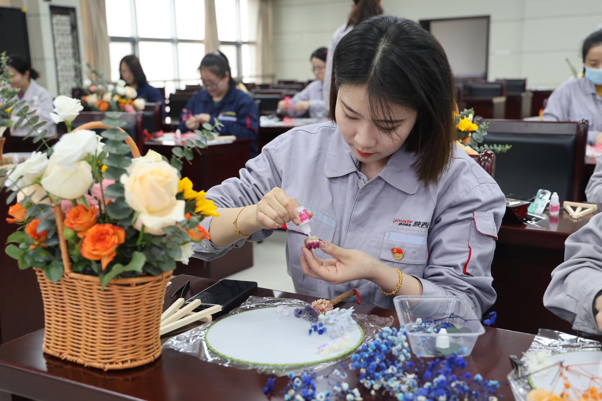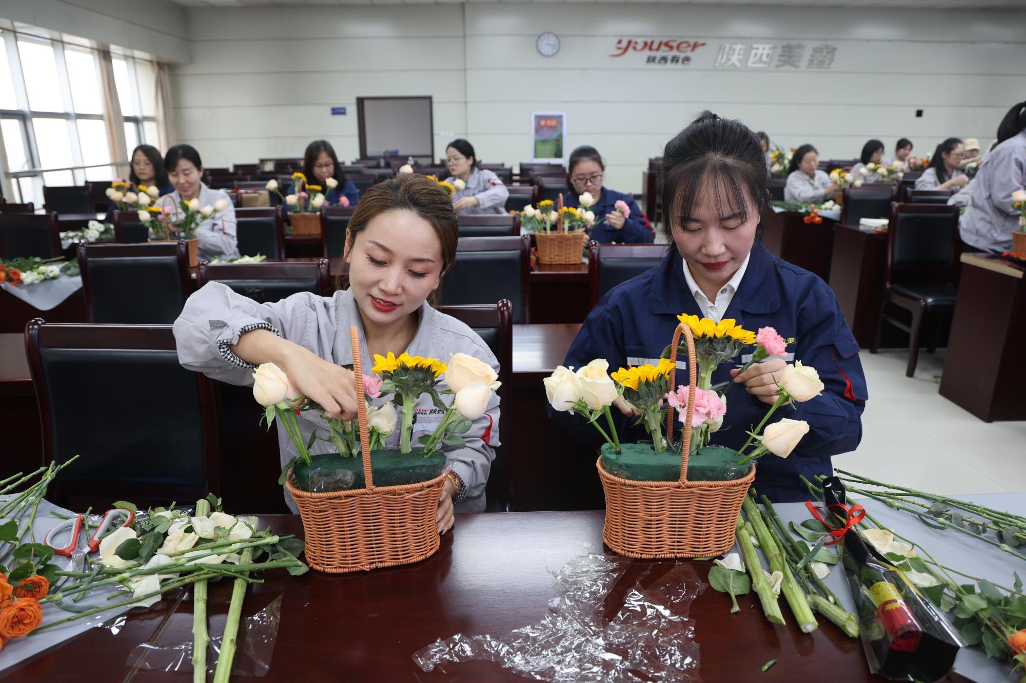 為慶祝第115個“三八”國際勞動婦女節(jié),3月7日下午,陜西美鑫公司女工委開展“‘陜’耀巾幗志·建功譜新篇”主題系列活動之“插花拾趣 悅享生活”、“巧手生花,制扇‘至美’”團扇DIY活動,來自陜西美鑫各單位約60余名女職工參加活動。陜西美鑫公司黨委副書記、工會主席楊亞科,工會副主席張曉進,黨委宣傳部副部長、女工委主任劉芳婧,工會辦公室主任王庚出席活動。