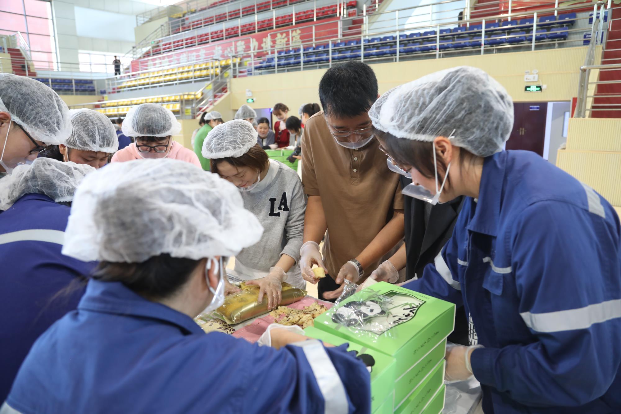 職工體育活動(dòng)中心被布置得喜樂(lè)愜意,營(yíng)造出濃厚的節(jié)日氣氛,現(xiàn)場(chǎng)分為兩個(gè)區(qū)域,每個(gè)區(qū)域以作業(yè)區(qū)和部室為單位,分為八個(gè)小組。