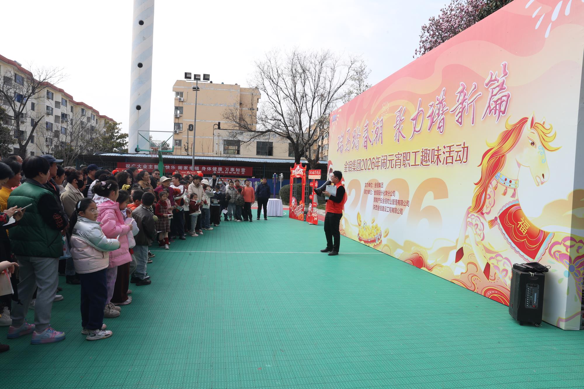 14時30分,活動在主會場——金城花園籃球場正式拉開帷幕。本次活動創(chuàng)新采用“打卡集章”的游園形式,共設(shè)置了八大趣味游戲和一個燈謎競猜專區(qū)。所有項目均巧妙融入“馬”年元素,現(xiàn)場成了一片“馬”的歡樂海洋。