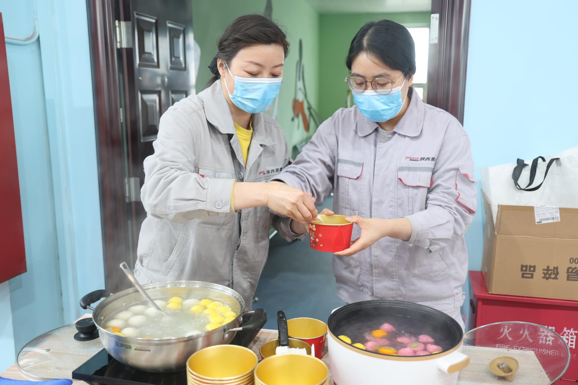 各活動(dòng)場(chǎng)地內(nèi)張燈結(jié)彩、笑語盈盈。猜燈謎、套圈、投壺、蒙眼敲鑼、歡快踩踩蹦等傳統(tǒng)趣味項(xiàng)目輪番登場(chǎng),大家踴躍參與、各顯身手,現(xiàn)場(chǎng)氣氛熱烈而輕松。與此同時(shí),五彩煙花束、湯圓跳跳樂等創(chuàng)意互動(dòng)環(huán)節(jié)也吸引了眾多目光,大家全情投入、互相助威,歡呼聲此起彼伏,節(jié)日的喜悅洋溢在每個(gè)人的臉上。在“巧手包湯圓”環(huán)節(jié),大家圍坐一堂,揉面、調(diào)餡、搓圓,一邊包著湯圓、一邊聊著家常,隨著一顆顆湯圓在沸水中翻滾升騰,大家圍坐而食,軟糯在口、溫暖入心,勞動(dòng)的甘甜與節(jié)日的暖意在這一刻交融匯聚。