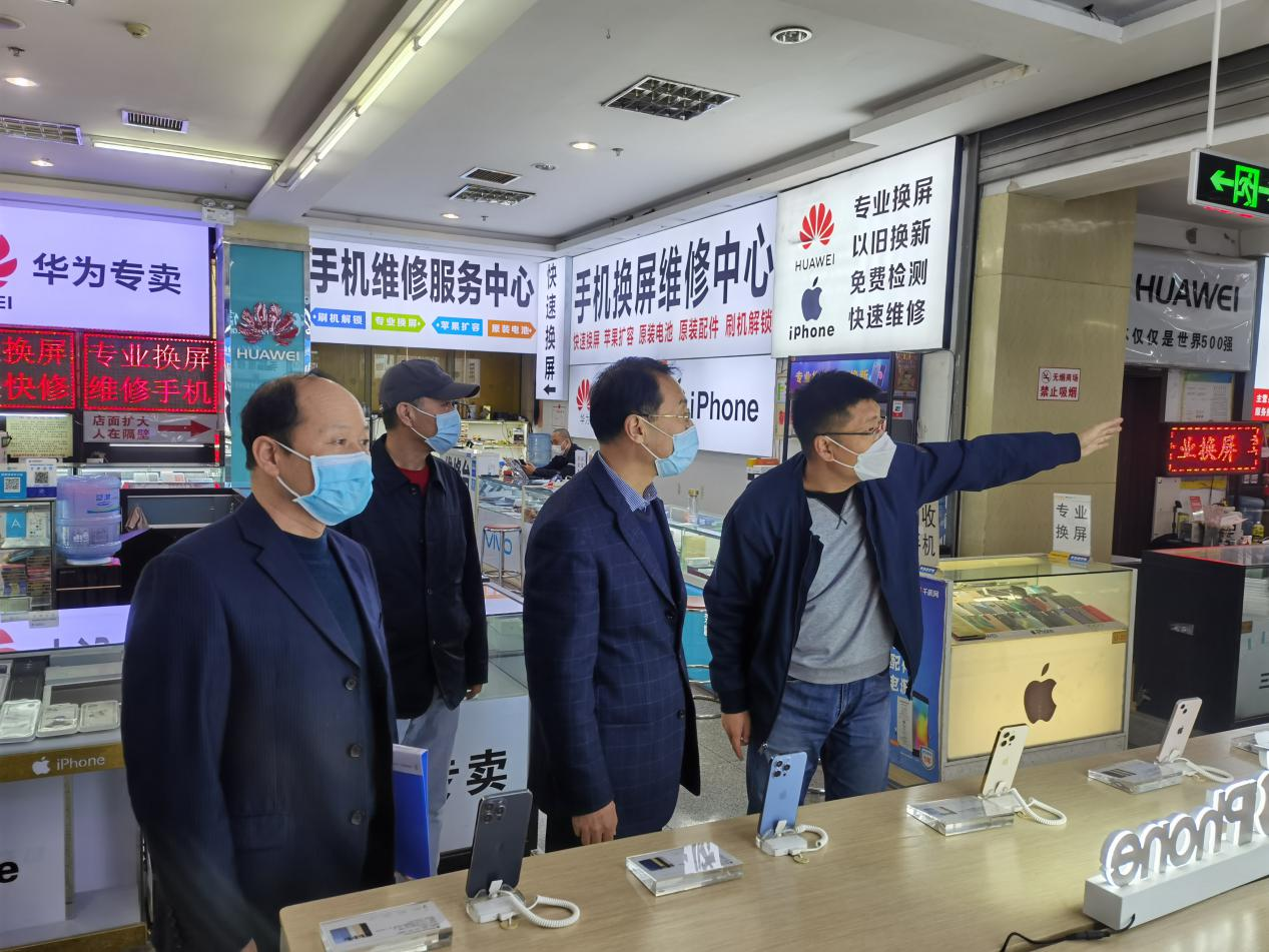 任治忠一行實(shí)地走訪了東新科貿(mào)A、B、C三座大樓,詳細(xì)查看了門崗執(zhí)勤人員的各項(xiàng)工作流程,現(xiàn)場(chǎng)監(jiān)督檢查了對(duì)進(jìn)入市場(chǎng)人員測(cè)體溫、掃碼、規(guī)范佩戴口罩、出入登記等項(xiàng)制度要求是否執(zhí)行到位,防疫物資是否配備齊全。隨后任治忠一行查看了疫情防控有關(guān)資料,東新科貿(mào)黨政主要負(fù)責(zé)人、副總經(jīng)理分別匯報(bào)了相關(guān)疫情防控工作情況。